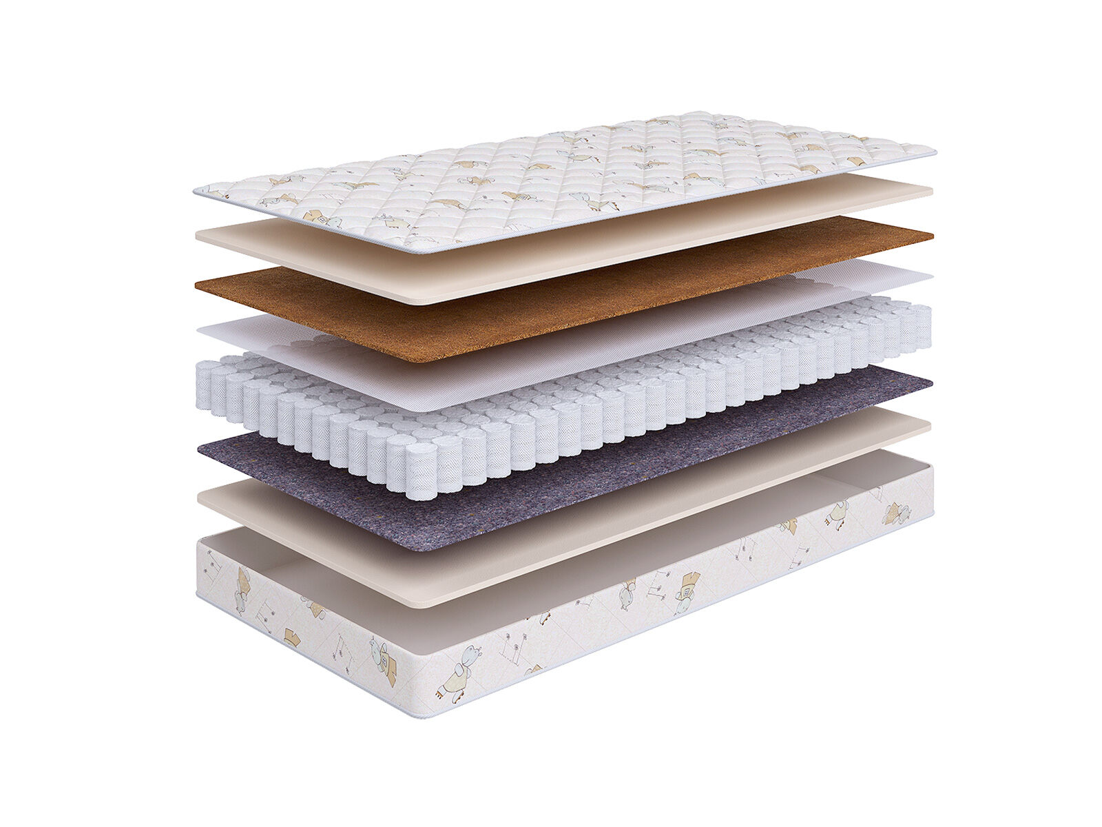 Кокосовая койра придает поверхности матраса жесткость, обладает превосходными ортопедическими и эксплуатационными свойствами.