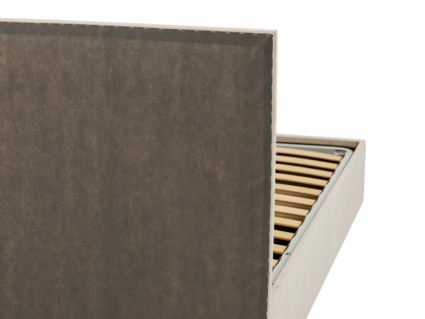 Кровать оснащена основанием с ламелями. Рекомендуемая высота матраса от 13 см, вес матраса до 50 кг. Чехлы на царгах несъемные. Высота/толщина царг: 28 см / 4 см (средняя), 2 см - (боковые).