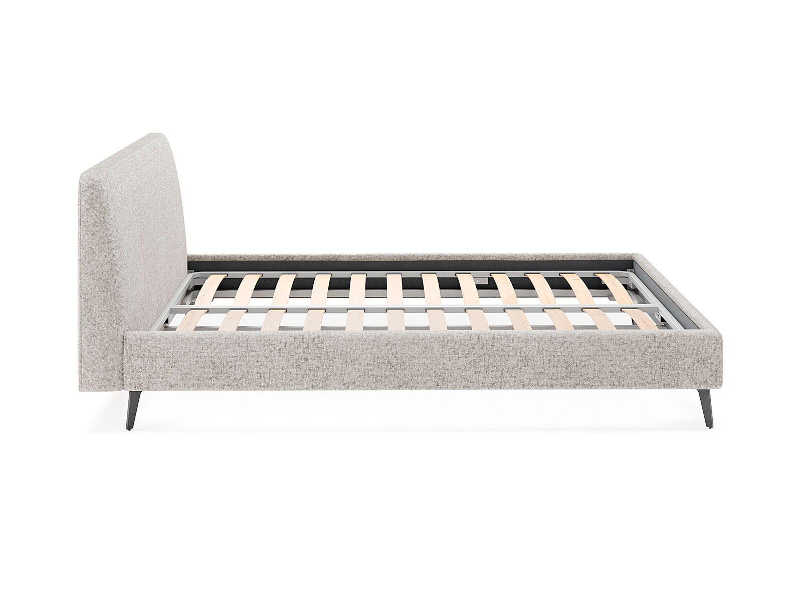 Кровать комплектуется металлическим основанием (без опор), которое имеет 13 рядов встроенных березовых ламелей на каждое спальное место, обеспечивая равномерное распределение нагрузки.