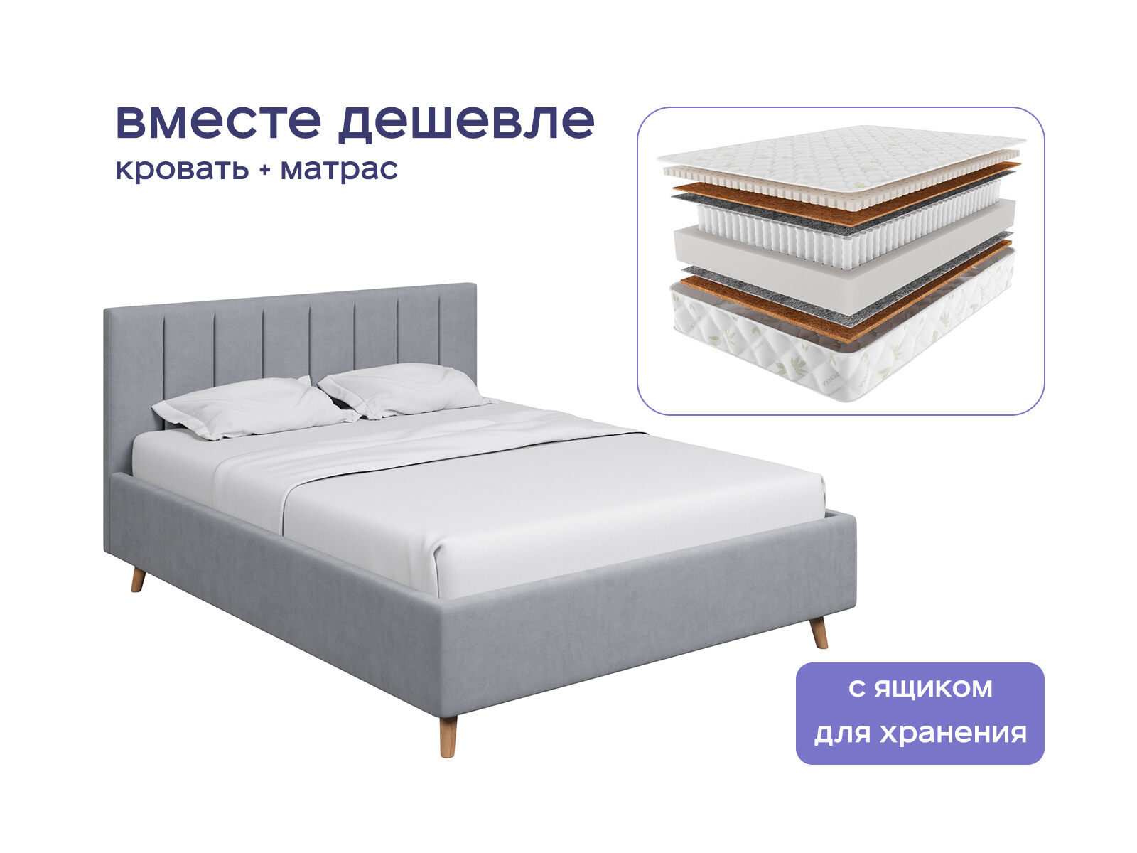 Комплект Амадора с подъемным механизмом + Мистер Слип Multi Line Элит Стронг — это гармония элегантности и умных технологий для сна. Кровать с дизайнерским изголовьем и двусторонний матрас из натуральных материалов создают пространство, где каждая деталь заботится о вашем комфорте, здоровье и эстетике интерьера. Покупая комплект, вы выбираете готовое решение для восстановления сил с выгодой до 36%.