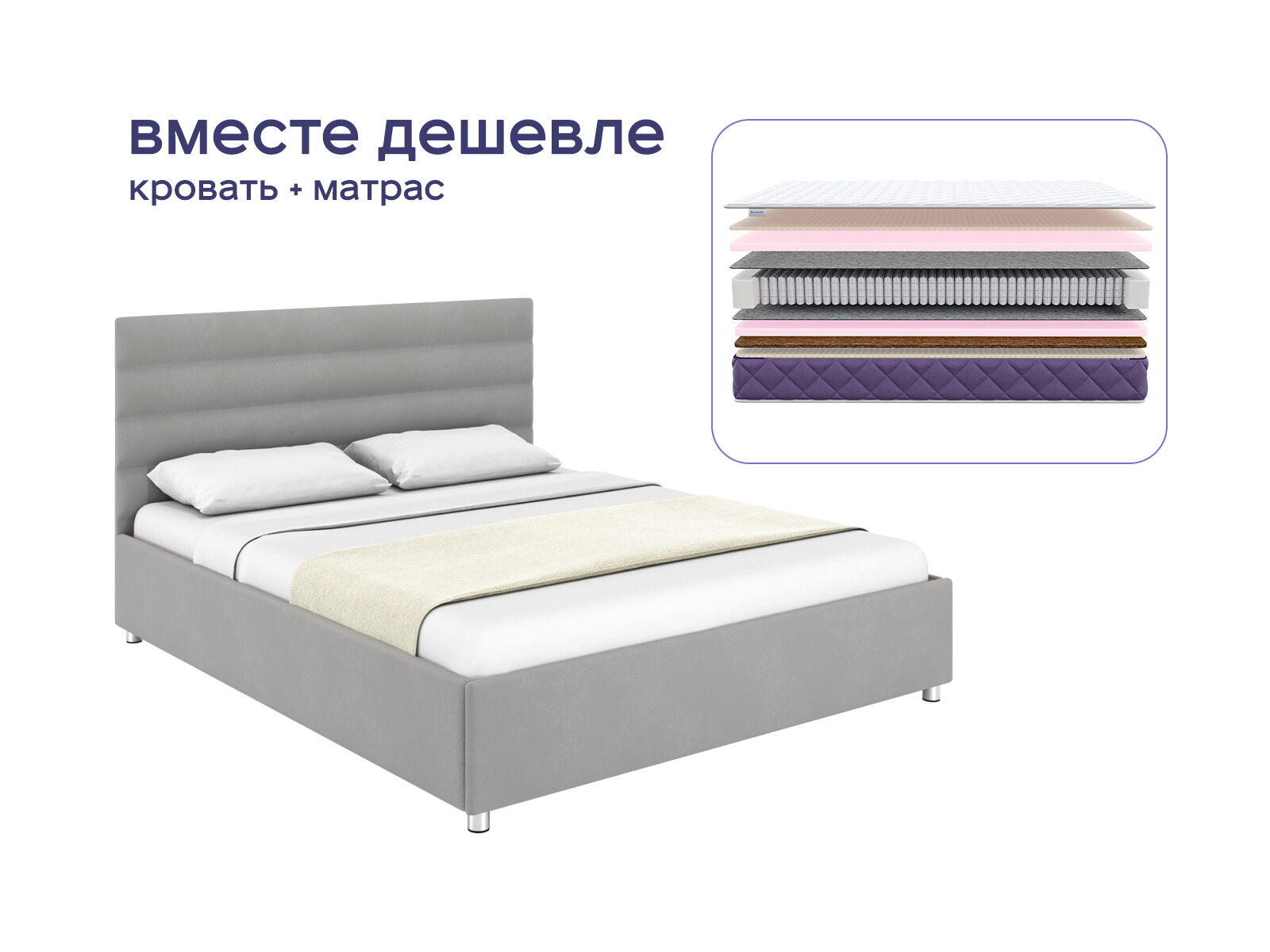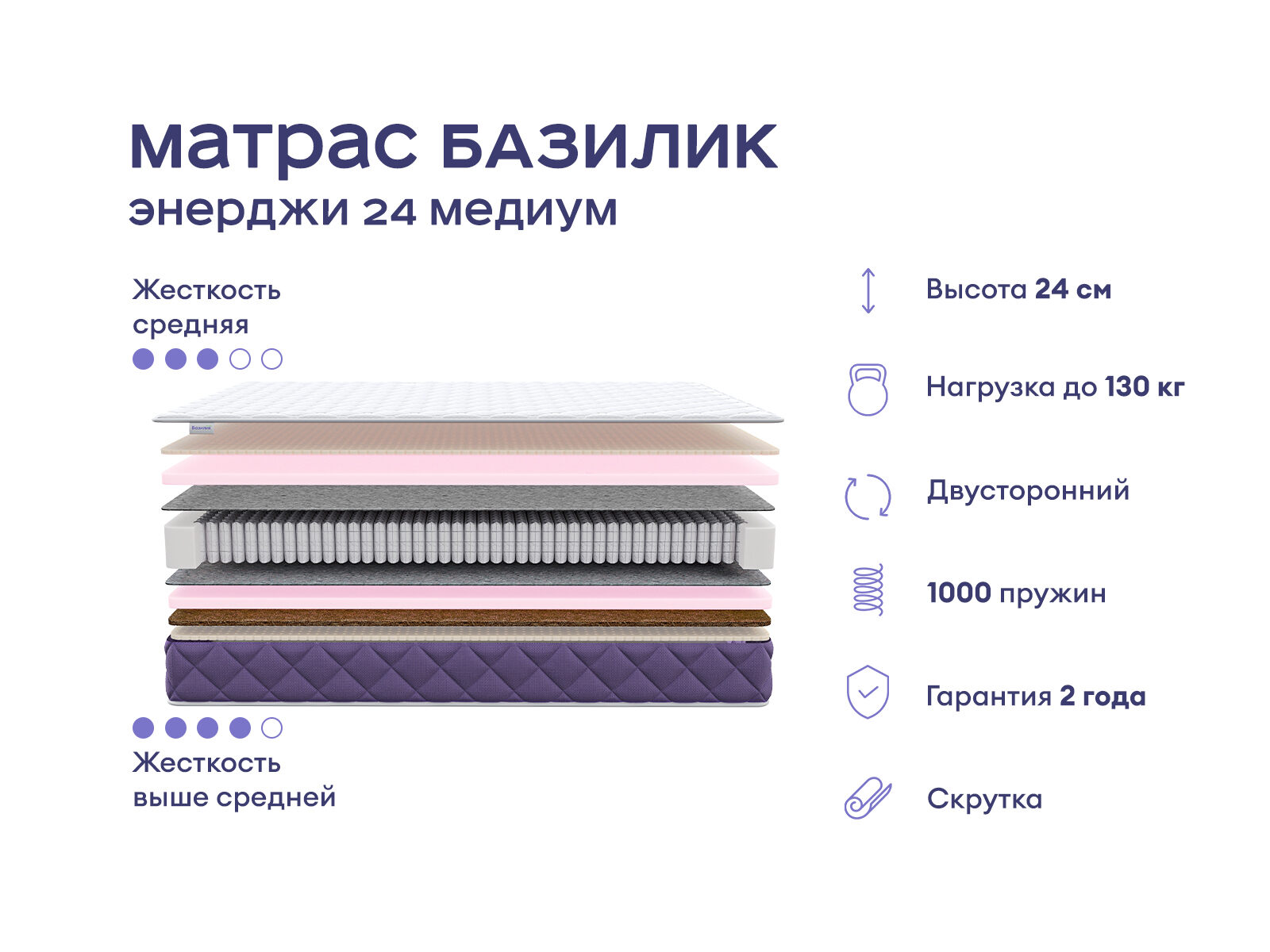 Комплект Левита + Базилик Энерджи 24 Медиум — элегантный альянс французского шарма и ортопедического комфорта. Кровать с уютным изголовьем и матрас средней жесткости создают пространство, где каждая деталь продумана для вашего отдыха: от тактильного удовольствия до поддержки спины. Покупая комплект, вы получаете не просто мебель, а готовое решение для сна, сочетающее экономию до 36% от стоимости, стиль и заботу о здоровье.