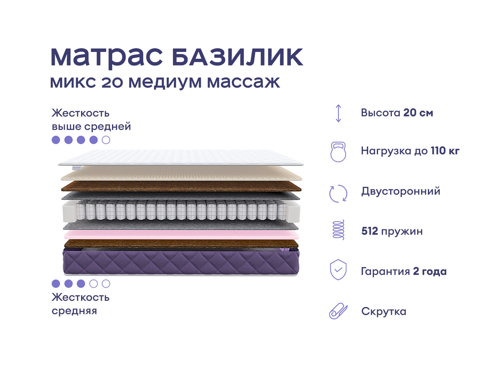Этот матрас создан для тех, кто ценит ортопедическую поддержку и приятный массажный эффект. Двусторонняя модель с разной жёсткостью и независимым пружинным блоком обеспечивает полноценный отдых и способствует расслаблению. Модель создает правильные условия для здоровья, комфортного расслабления и полноценного сна.