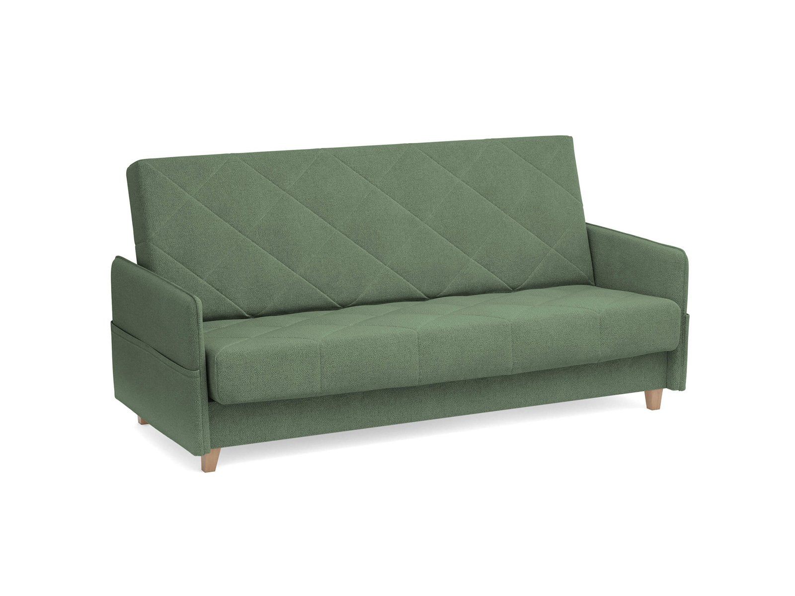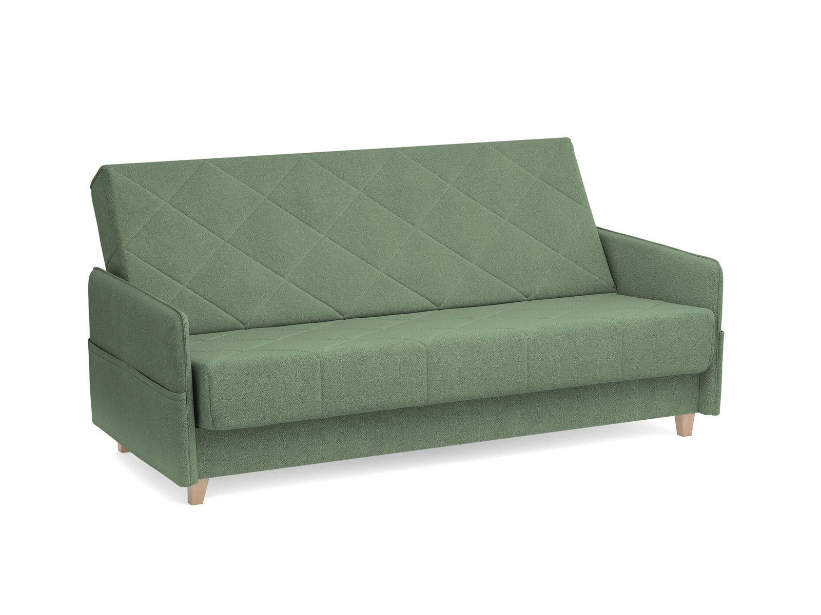 Диван для сна в скандинавском стиле с механизмом трансформации «клик-кляк» и коробом для хранения. Основание дивана металлическое, с ламелями. Матрас анатомический с независимым пружинным блоком. Благодаря съемному чехлу с объемной стежкой в форме ромбов, диван органично впишется в современные интерьеры в скандинавском стиле и стиле минимализм.