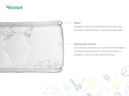 Детский матрас Гений на основе натуральных наполнителей и качественного блока с независимыми пружинами. Модель обладает жёсткостью среднего и выше среднего уровней – достаточно перевернуть матрас, чтобы добиться другого уровня комфорта.