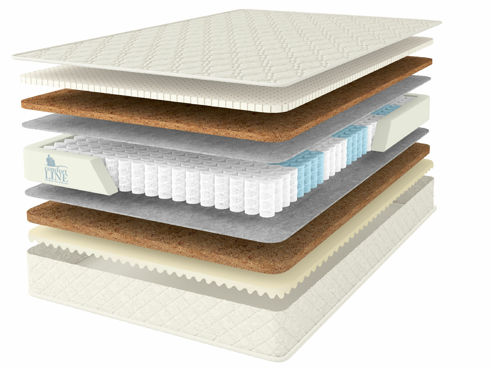Кокосовое волокно с натуральным латексом придает жесткость, экологически чистый материал, который прекрасно вентилируется.