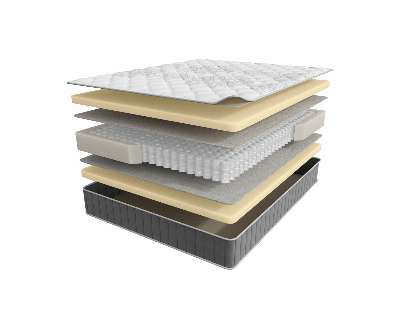 Независимый пружинный блок нового поколения. Уникальная конструкция 4D Spring делает его более упругим пружинным блоком и имеет 1000 пружин на спальное место. Углеродистая сталь двойной закалки позволяет выдерживать экстремальные нагрузки, более 140 кг на спальное место.