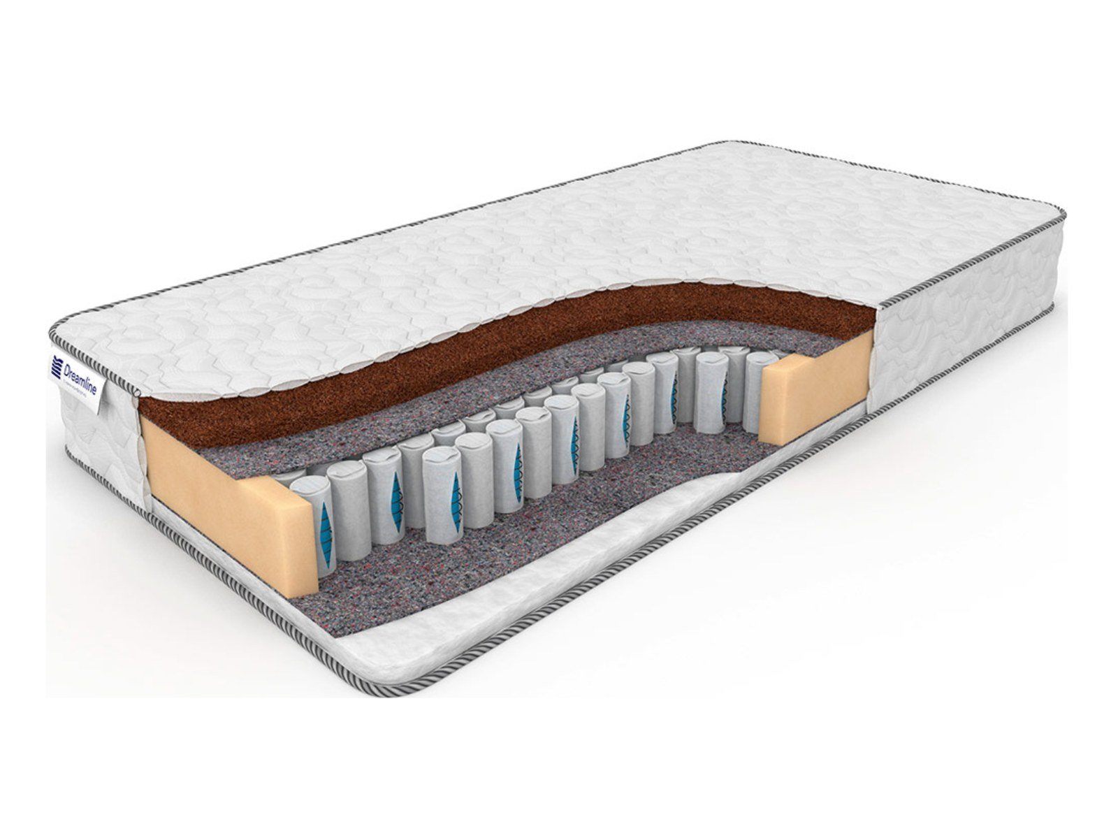 Товар является нестандартным изделием с сохранением гарантийных обязательств от фабрики Dreamline. Комбинированный матрас с переменной жёсткостью поверхностей. Сторона А – латексированная койра, произведённая из кокосовых волокон, обладающая высокой жёсткостью. Сторона Б – холлофайбер - материал, являющийся заменителем эластичной пены. Уровень жёсткости холлофайбера выше, чем у пены, и ниже, чем у койры, но его вполне достаточно, чтобы обеспечить сбалансированное распределение массы тела по поверхности матраса. Высокотехнологичный независимый пружинный блок DS способен подарить комфортный оздоравливающий отдых тем, чей вес не превосходит 150 кг.