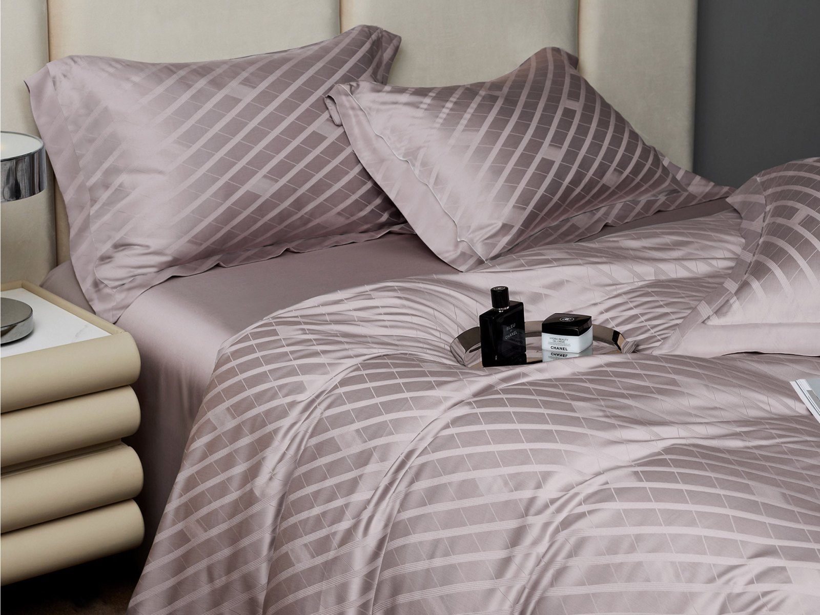 Премиальное постельное белье из жаккардового тенселя дарит истинное блаженство и расслабление. Фактура ткани украшена лаконичный дизайном, созданным путем особого переплетения нитей. Благородная клетка, выполненная в цвете светлого серебра, подчеркивает элегантность тенселя, его шелковые переливы. С постельным бельем из жаккардового тенселя Вы насладитесь не только безупречным качеством , но и получите удовольствие от прикосновения к ткани.
