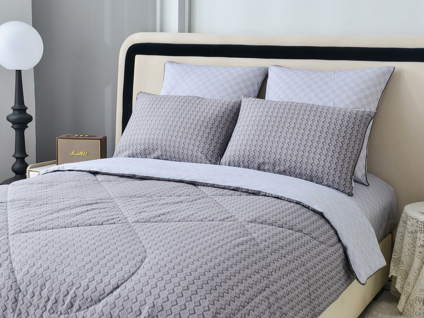 Особенность: двусторонняя модель, наволочки и одеяла декорированы кантом.