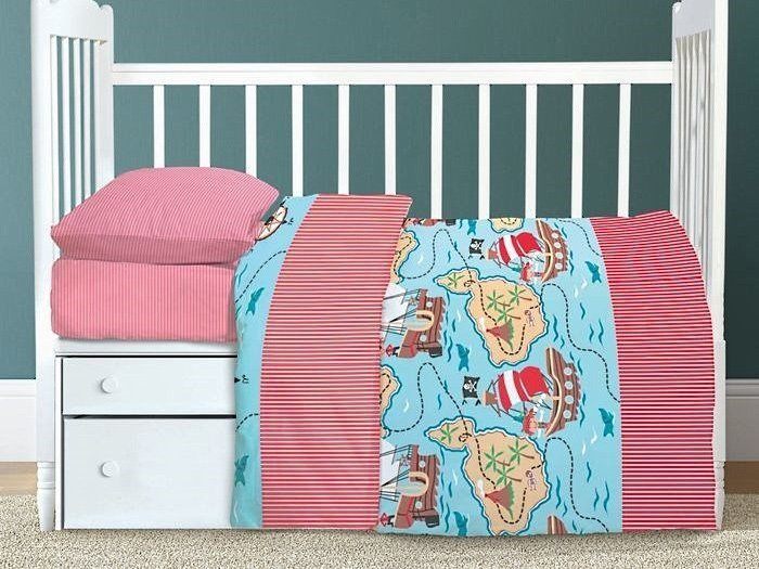 Комплект детского постельного белья в кроватку из сатина (100% хлопок, плотность 128 г/м2). Упаковка: ПВХ.