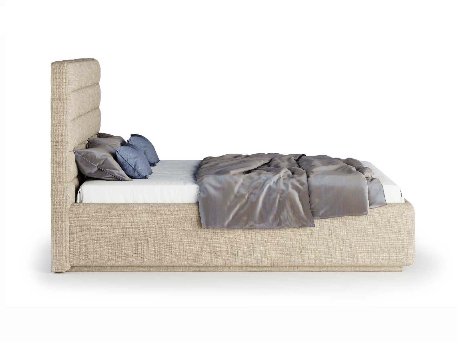Кровать укомплектована IQ с подъемным механизмом и ящиком для белья без дна (дополнительная платная опция - дно к ящику IQ из HDF (ХДФ). Каркас кровати на цоколе, декоративный чехол на цоколе съёмный. Глубина ящика для белья - 30 см, без ограничения нагрузки на ящик.