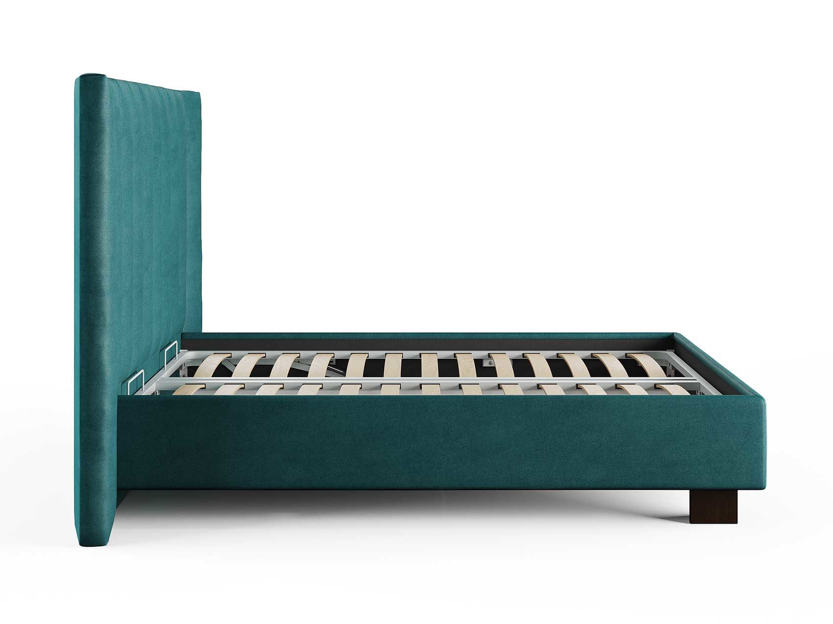Кровать соответствует самым модным тенденциям и прекрасно впишется в современный интерьер просторной спальни. Высокая спинка с мягкими элементами выглядит эффектно. Поворотный механизм боковых элементов изголовья меняет форму, создавая более уютную атмосферу в спальне. Увеличенная прочность кровати достигается за счет металлического каркаса по периметру. Массивные ножки, выполнены из бука цвета венге. Расстояние от пола до царг способствует легкой уборке под кроватью, в том числе роботом – пылесосом.