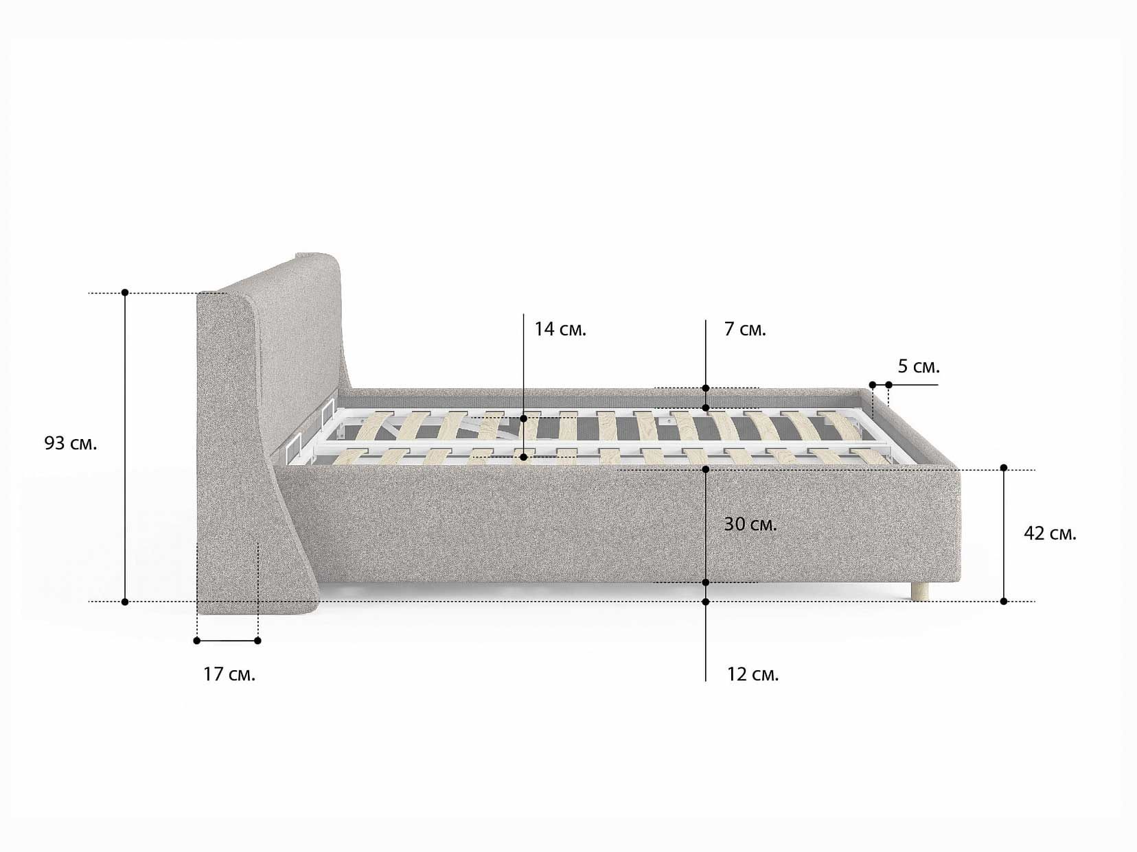 Допустимая высота матраса - 30 см.