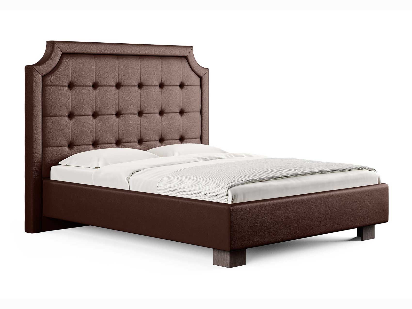 Кровать прекрасно впишется в интерьер от классики до современного стиля и cтанет отличным решением для просторной светлой спальни. Высокая спинка с мягкими утяжками и массивной рамкой выглядит эффектно. Задняя часть спинки кровати выполнена в основной ткани, благодаря этому ее можно установить в центре комнаты. Увеличенная прочность кровати достигается за счет металлического каркаса по периметру. Массивные ножки, выполнены из бука цвета венге. Расстояние от пола до царг способствует легкой уборке под кроватью, в том числе роботом – пылесосом.