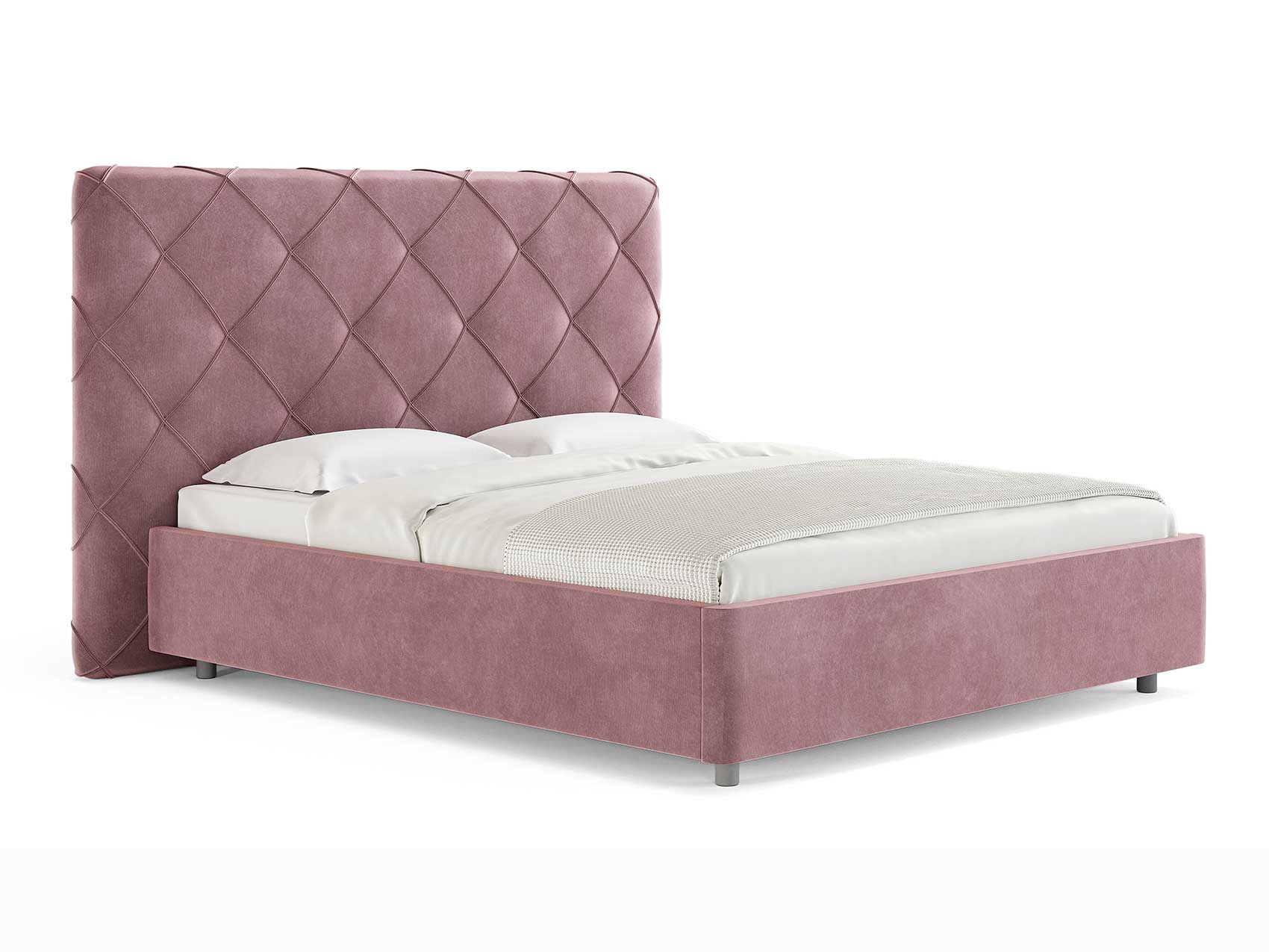Современная интерьерная кровать. При необходимости, возможно установить подъемный механизм с бельевым ящиком. Ножная царга кровати скругленная по углам, что обеспечивает более элегантный внешний вид.