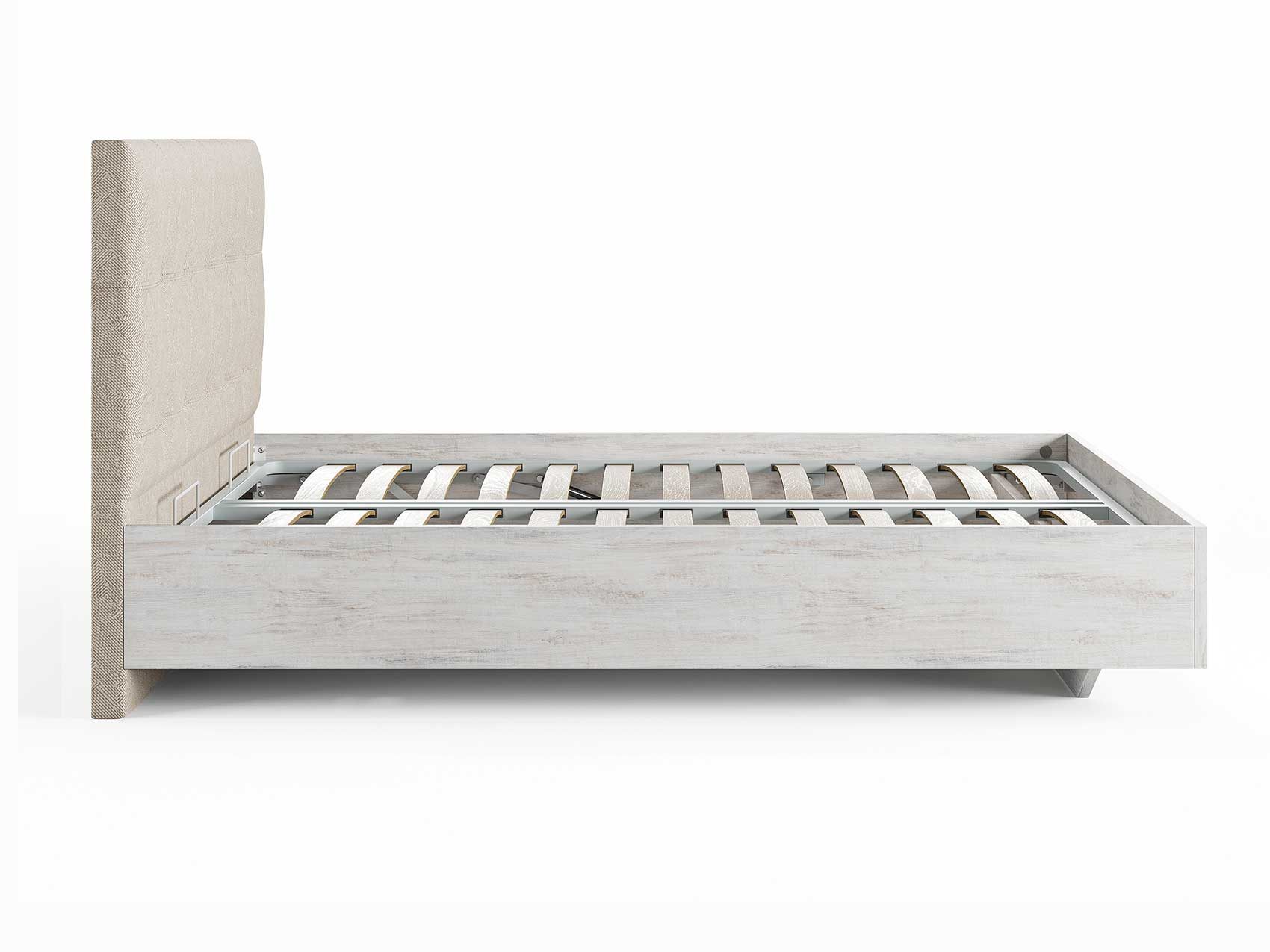 Кровать комплектуется металлическим основанием (без опор), которое имеет 13 рядов встроенных березовых ламелий на каждое спальное место, обеспечивая равномерное распределение нагрузки.
