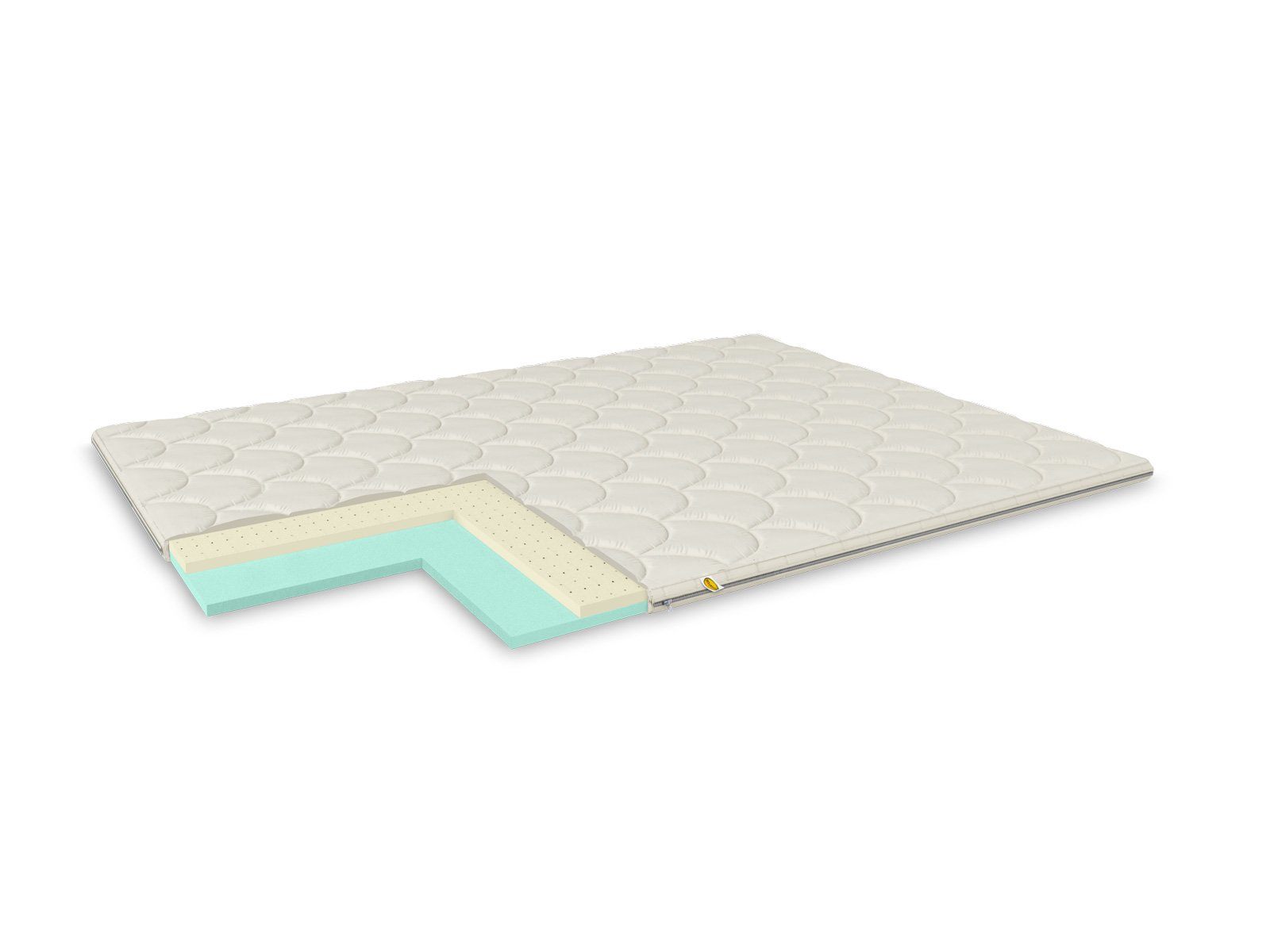 Съемный чехол намарасника, выполнен из хлопкового жаккарда, простеганного на экологически чистом материале Hollcon. Ткань обработана специальной антибактериальной пропиткой SANITIZED (Швеция). Пропитка обеспечивает полное уничтожение плесневых грибков, не дает развиваться микроорганизмам, пылевым клещам и микробам. Чехол можно снимать и стирать, что очень просто и удобно. У наматрасника присутствуют по углам 4 резинки для лучшего скрепления с матрасом. В качестве опции по периметру могут быть вшиты липучки для скрепления с каркасом основания.