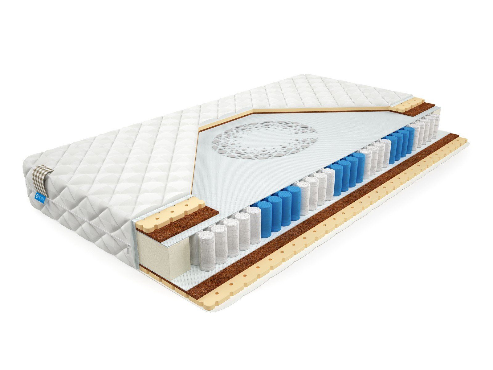 Матрас BioCrystal First XL - недорогой матрас средней жесткости с латексом. Матрас c ортопедическим эффектом на основе семи-зонного пружинного долговечного блока независимых пружин SIlverSpringPocket 7 zone. Данный блок насчитывает 580 металлических пружин на одно спальное место, это оптимальное количество пружин для бюджетного матраса. 7 зональный пружинный блок SSP 580 значительно прочнее обычного блока независимых пружин, и имеет большее количество витков, что, в свою очередь, лучше сказывается на упругости матраса и качестве сна. Матрас насчитывает семь зон жесткости и правильно повторяет изгибы позвоночника во время сна или отдыха. С каждой стороны матраса по 2 сантиметра натурального латекса и 1 сантиметру латексированного кокосового волокна. Это оптимальный выбор для тех, кому важен комфортный сон и долговечность матраса.