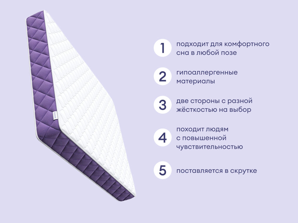 Матрас Базилик Фреш 20 Кокос сочетает в себе удобство и надёжную поддержку. Два вида наполнителей и средний уровень жёсткости делают его отличным выбором для полноценного отдыха. Яркий лавандовый бурлет привносит стиль французского Прованса прямо в ваш дом.