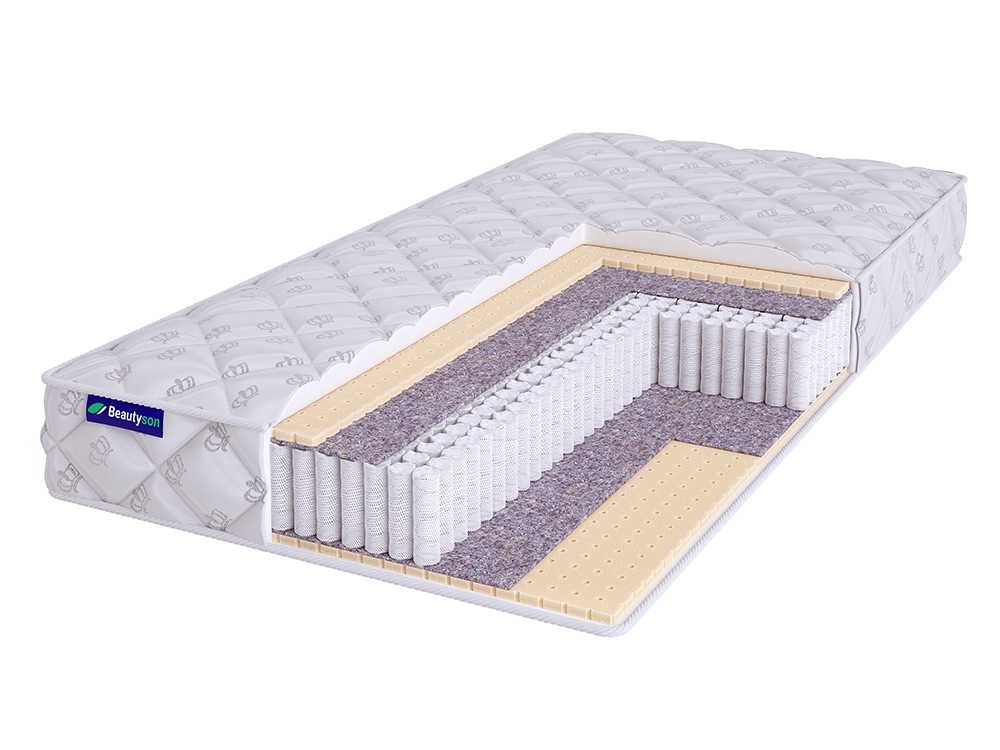 Матрас BeautyRoll Roll Spring Latex 1 S1200 доставляется в вакуумной упаковке, что значительно упрощает его транспортировку. Модель двустороння и показывает выраженную мягкость с обеих спальных поверхностей.