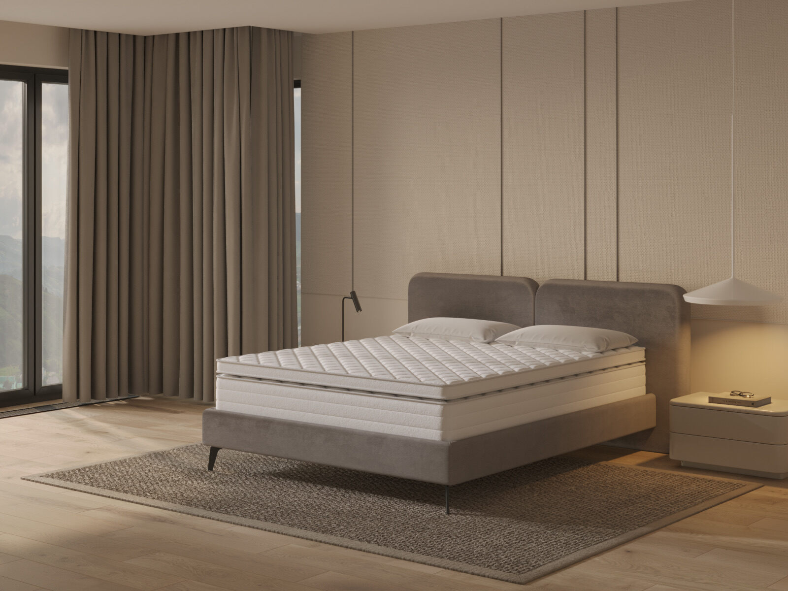 Данная модель уникальна своей конструкцией — благодаря разным сторонам жёсткости и входящему в комплект топперу можно подобрать любую степень жёсткости в зависимости от желания или сезона: