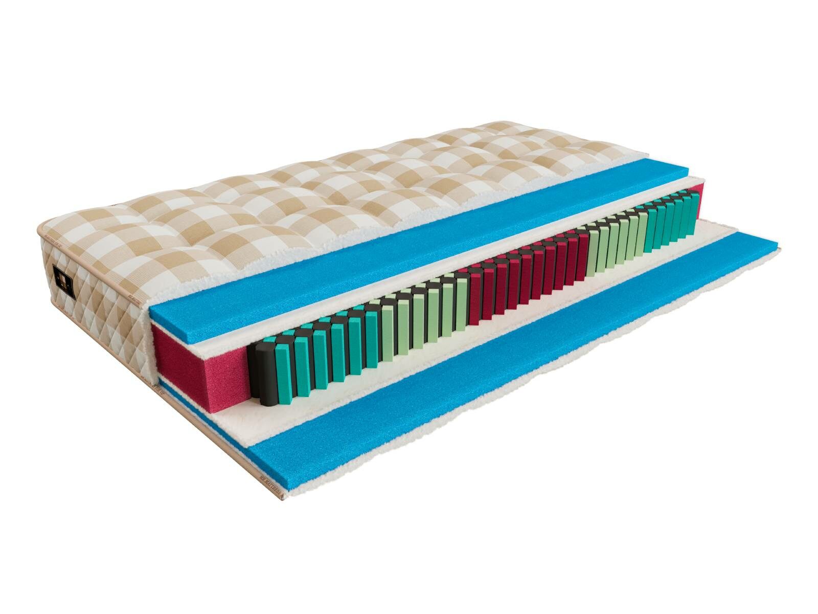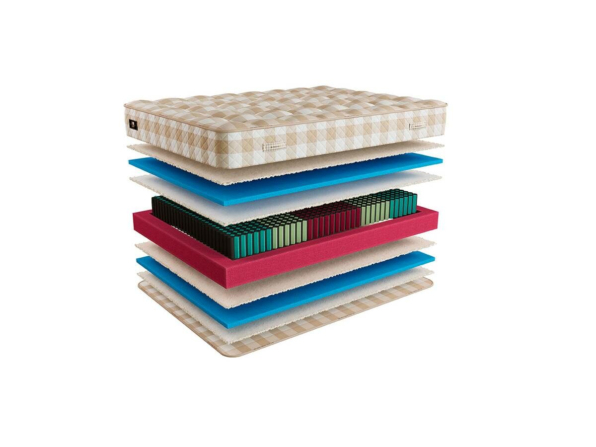 В натуральная испанская соевая пена Viscoool c эффектом охлаждения и памяти 3 см, защита пружинного блока из натуральной шерсти и сам блок. Для лучшей анатомичности добавили еще пружины из соевой пены Solid Foam, Soya Foam и Neropur.