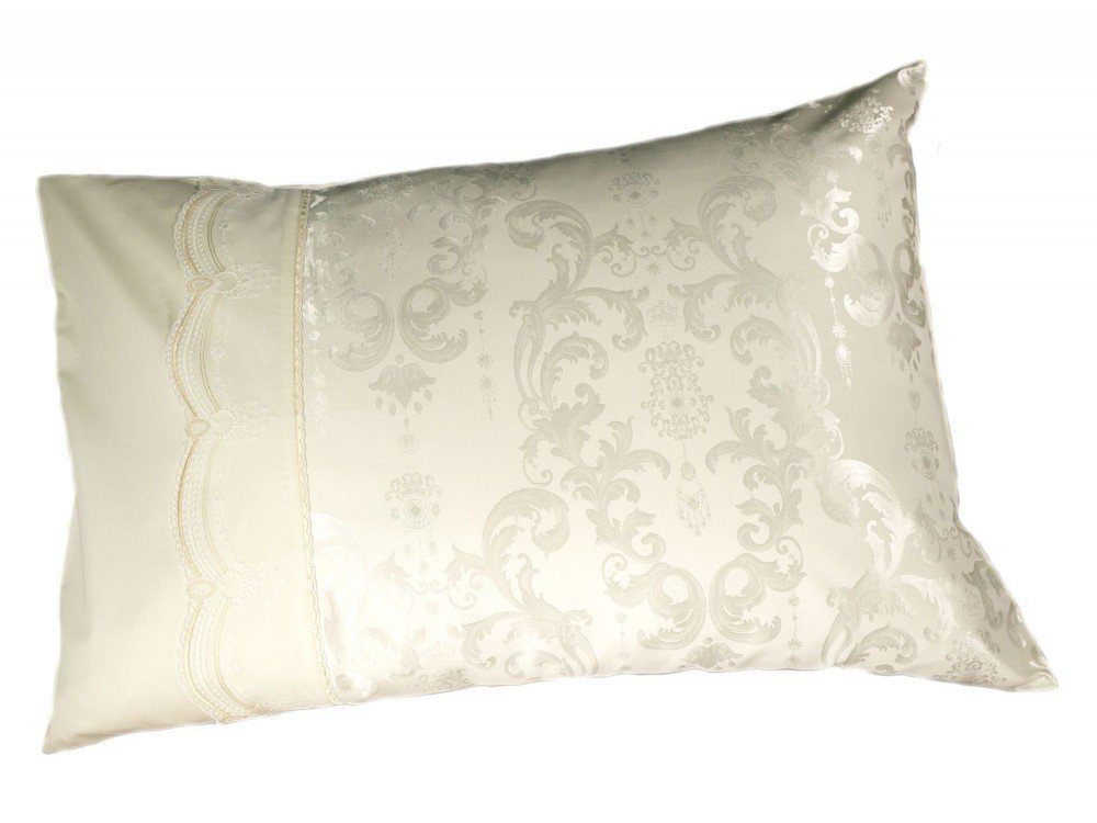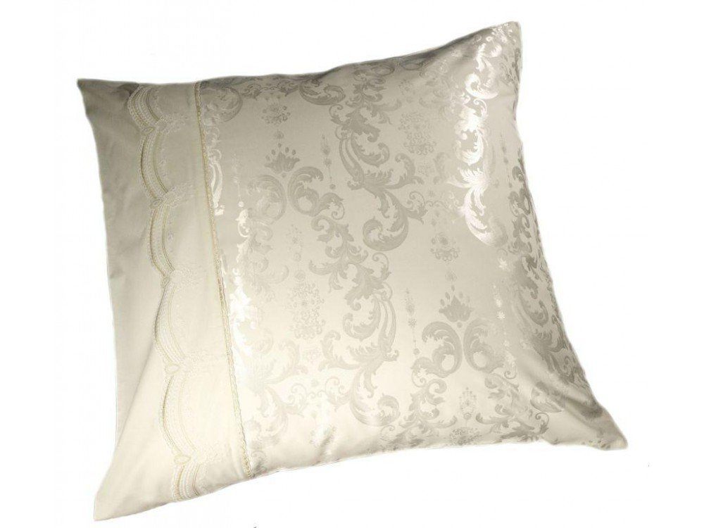Комплект наволочек 50х70 см 2 шт. или 70х70 см 2 шт. молочного цвета. Верх наволочек из жаккардового люкс-сатина (55% вискоза, 45% хлопок), оборотная сторона люкс-сатин (100% хлопок). Отделка - кружево. Наволочки закрываются на клапан. В комплекте 2 наволочки; упакованы в пакет из пвх с фирменным логотипом.