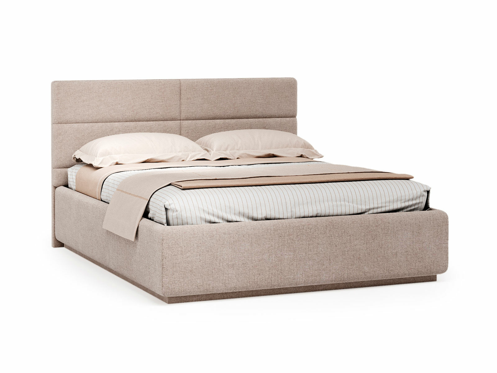 Кровать укомплектована IQ с подъемным механизмом и ящиком для белья без дна (дополнительная платная опция - дно к ящику IQ из HDF (ХДФ). Каркас кровати на цоколе, декоративный чехол на цоколе съёмный. Глубина ящика для белья - 30 см, без ограничения нагрузки на ящик.