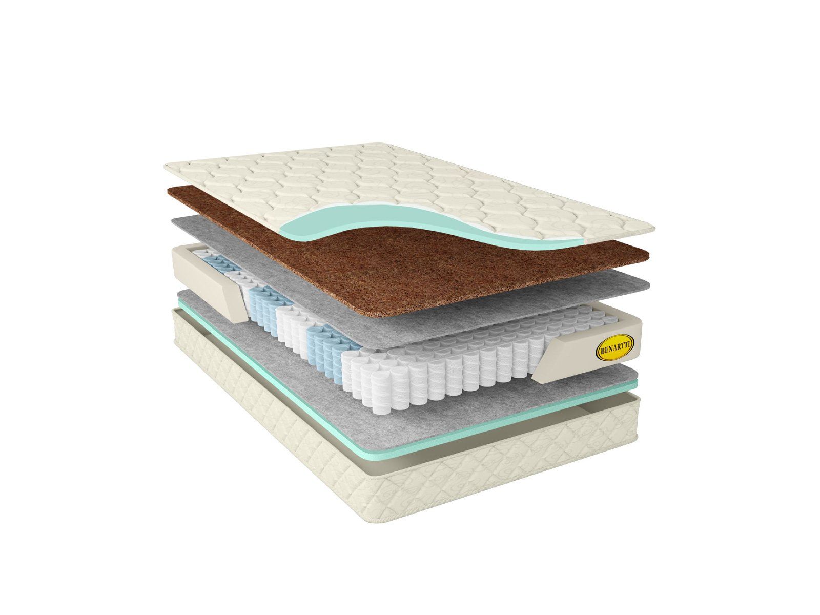 С одной из сторон для большей плотности и жёсткости поверхности устанавливается плита кокосовой койры. Этот наполнитель отлично усиливает ортопедические свойства матраса, поэтому поверхность приобретает ещё более выраженную поддержку.