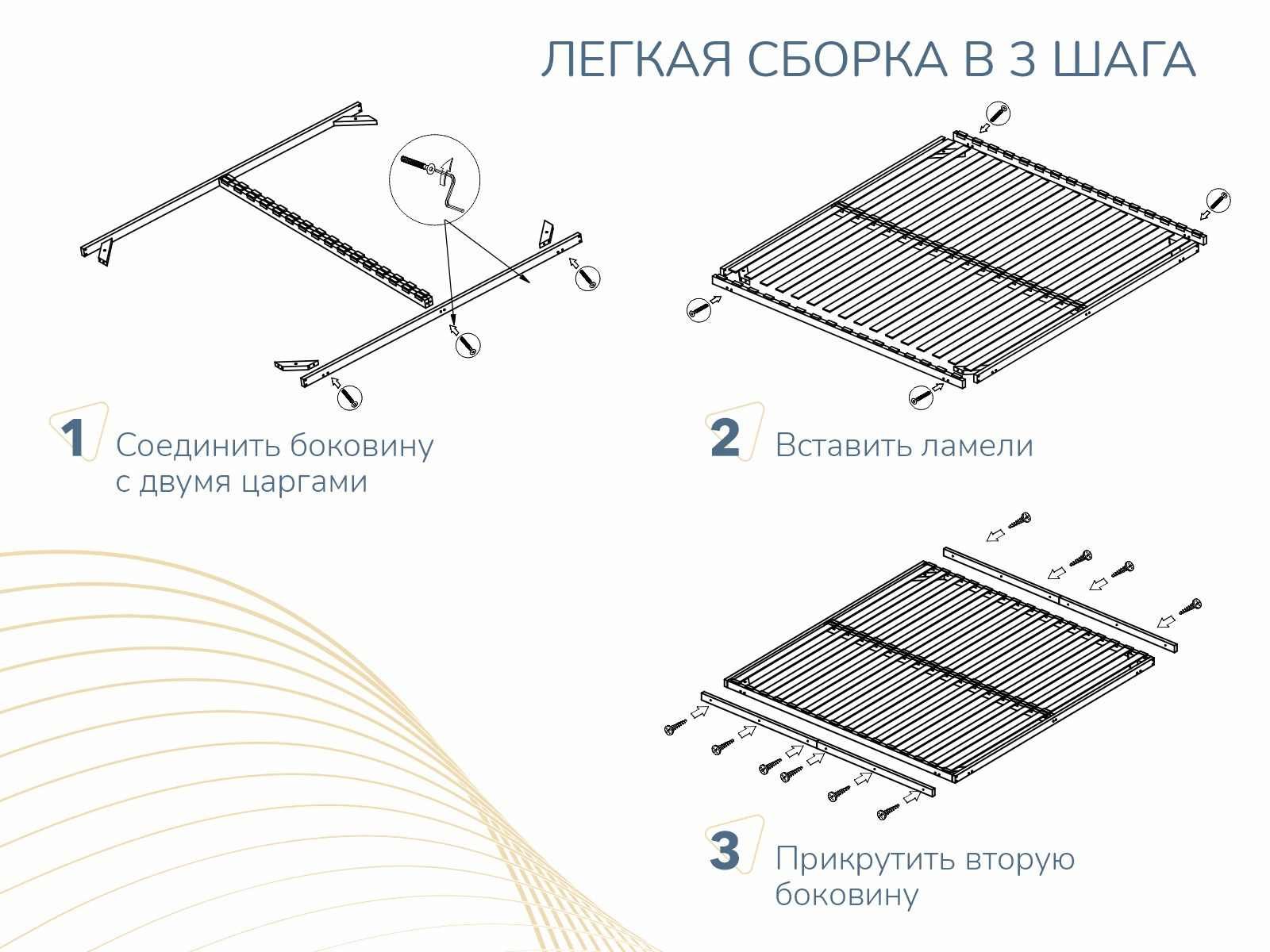 Деревянное основание без ножек для любых беспружинных матрасов и матрасов с пружинным блоком Bonnel и TFK, вкладывается в кровать на царги. Рама изготовлена из клееной фанеры из березы сечением 50х25мм. Латы березовые, латодержатели пластиковые.