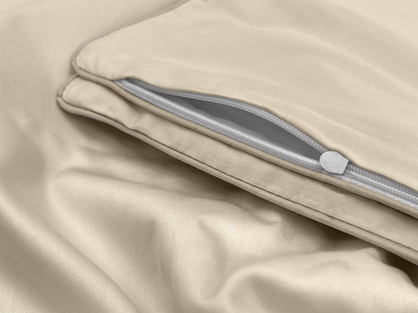 Пододеяльник украшен декоративным кантом по периметру и имеет удобную молнию по всей ширине, что значительно упрощает процесс его замены. Изысканный цвет экрю - натуральный и мягкий оттенок серо-бежевого, который относится к базовым цветам в оформлении интерьера и послужит основой для любых контрастных решений.