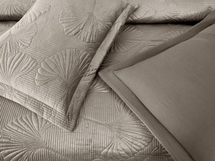Роскошный растительный орнамент в виде вышивки добавит Вашей спальне элегантности и изысканности. Текстура цветочного узора будет сочетаться с другими элементами интерьера, такими как шторы, подушки, ковры и т.д.