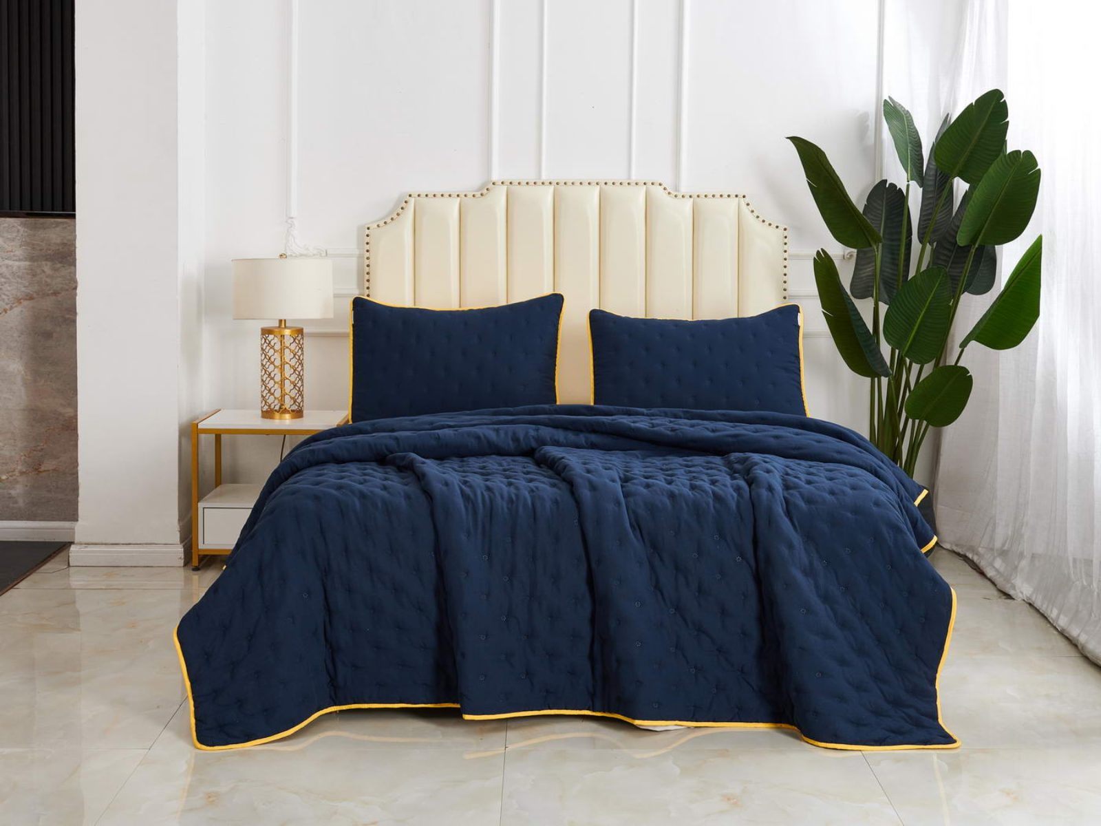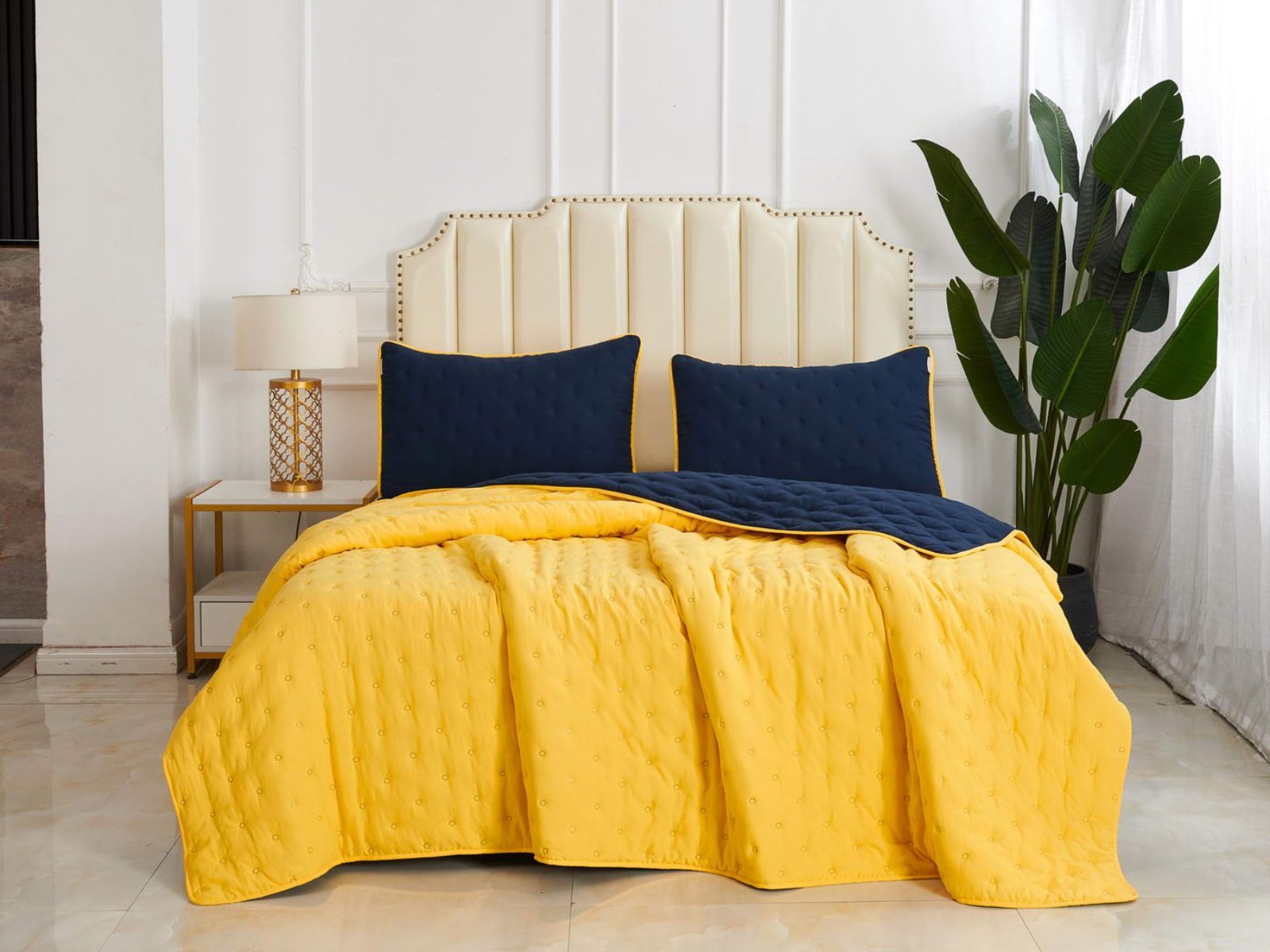 Двусторонние стеганные покрывала Броуди легкие и прочные. В комплект входят покрывало и одна либо две наволочки (50х70 см) из аналогичного материала в зависимости от размера. При желании покрывало можно использовать как легкое одеяло.