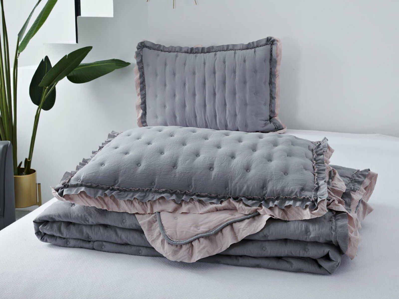 Покрывала выполнены в десяти оттенках, они подойдут для различных интерьеров, объединяет коллекцию потрясающее качество и приятный внешний вид. Изделия декорированы рюшами по краю, что подчеркивает из красоту и изысканность.