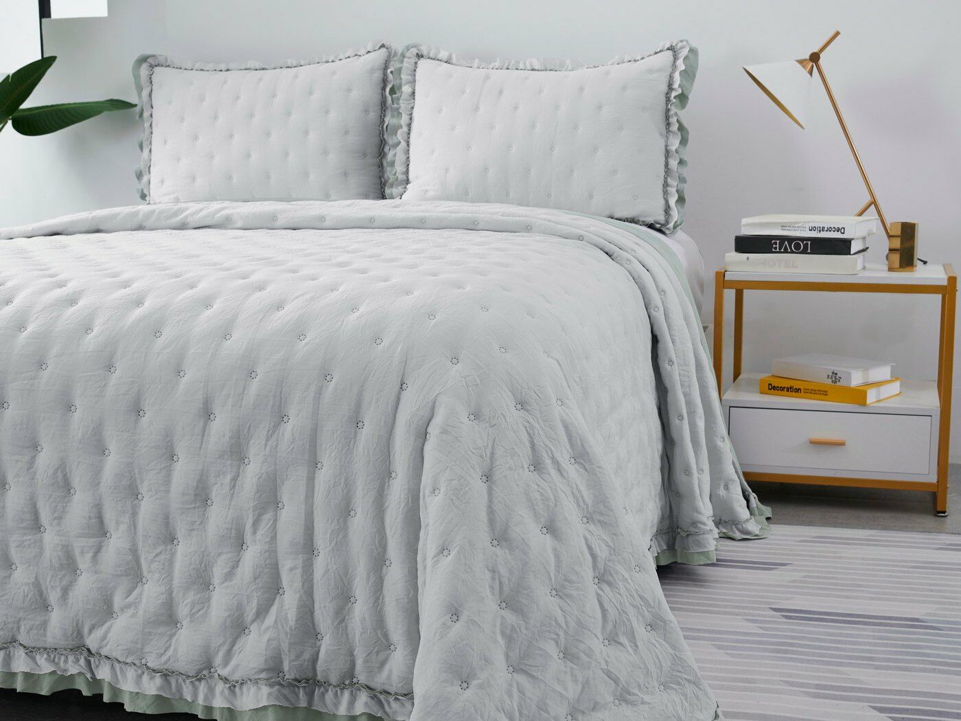Покрывала выполнены в десяти оттенках, они подойдут для различных интерьеров, объединяет коллекцию потрясающее качество и приятный внешний вид. Изделия декорированы рюшами по краю, что подчеркивает из красоту и изысканность.
