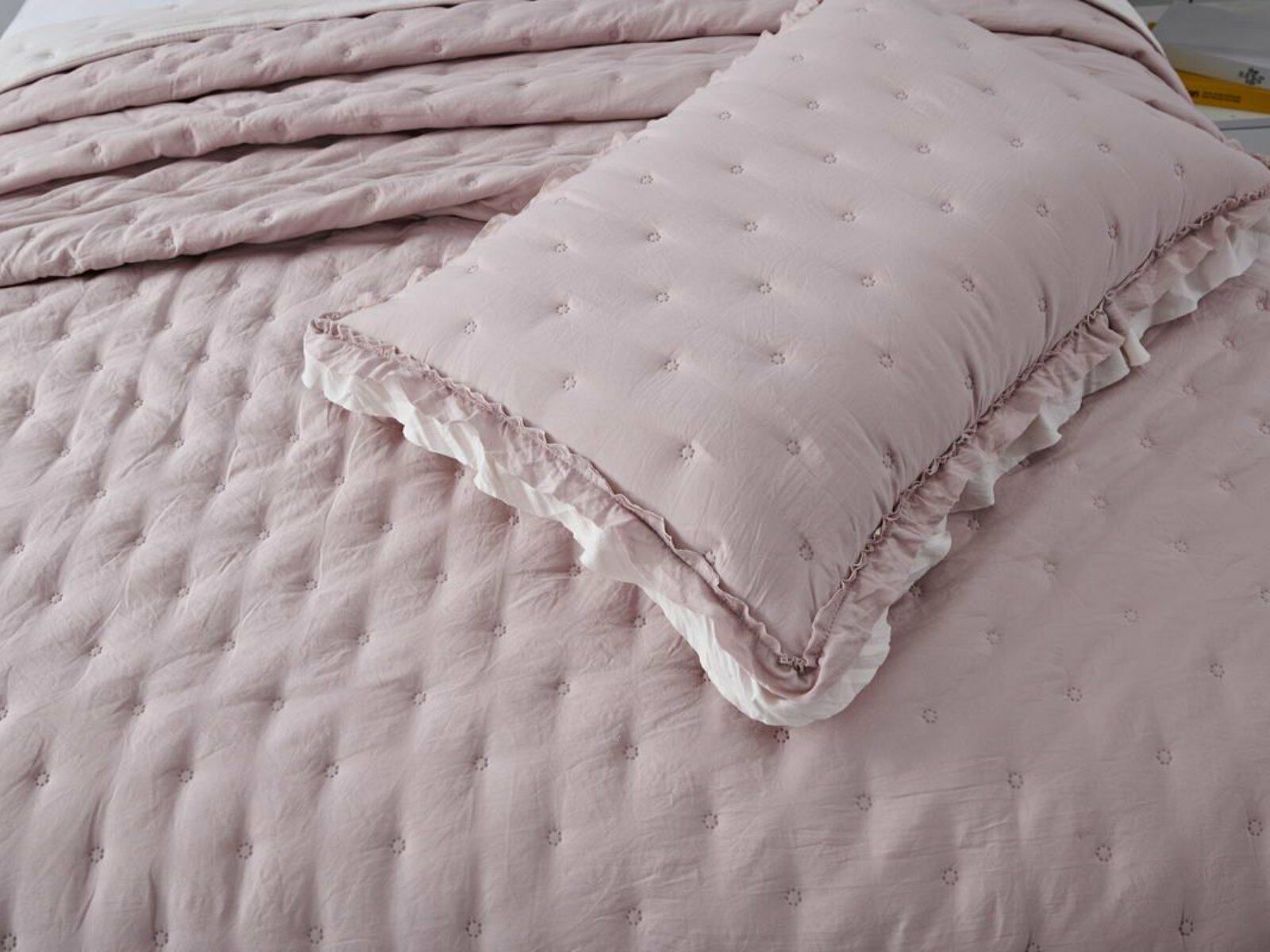 Покрывала выполнены в десяти оттенках, они подойдут для различных интерьеров, объединяет коллекцию потрясающее качество и приятный внешний вид. Изделия декорированы рюшами по краю, что подчеркивает из красоту и изысканность.