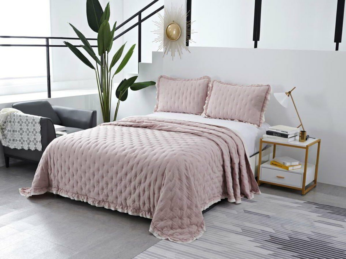 Двусторонние стеганные покрывала Элизабет выполнены из вискозы и хлопка, они легкие и прочные. В комплекте с покрывалом идут две наволочки, вы можете использовать покрывало по назначению, либо в качестве постельного белья. В любом случае, вы будете в восторге от этого комплекта!