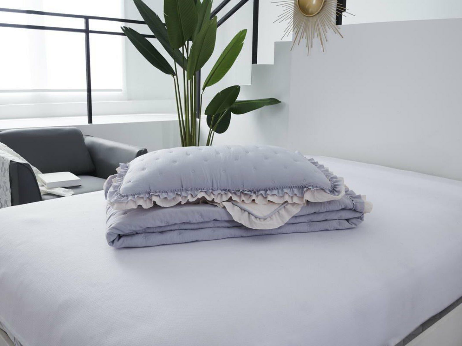 Покрывала выполнены в десяти оттенках, они подойдут для различных интерьеров, объединяет коллекцию потрясающее качество и приятный внешний вид. Изделия декорированы рюшами по краю, что подчеркивает из красоту и изысканность.