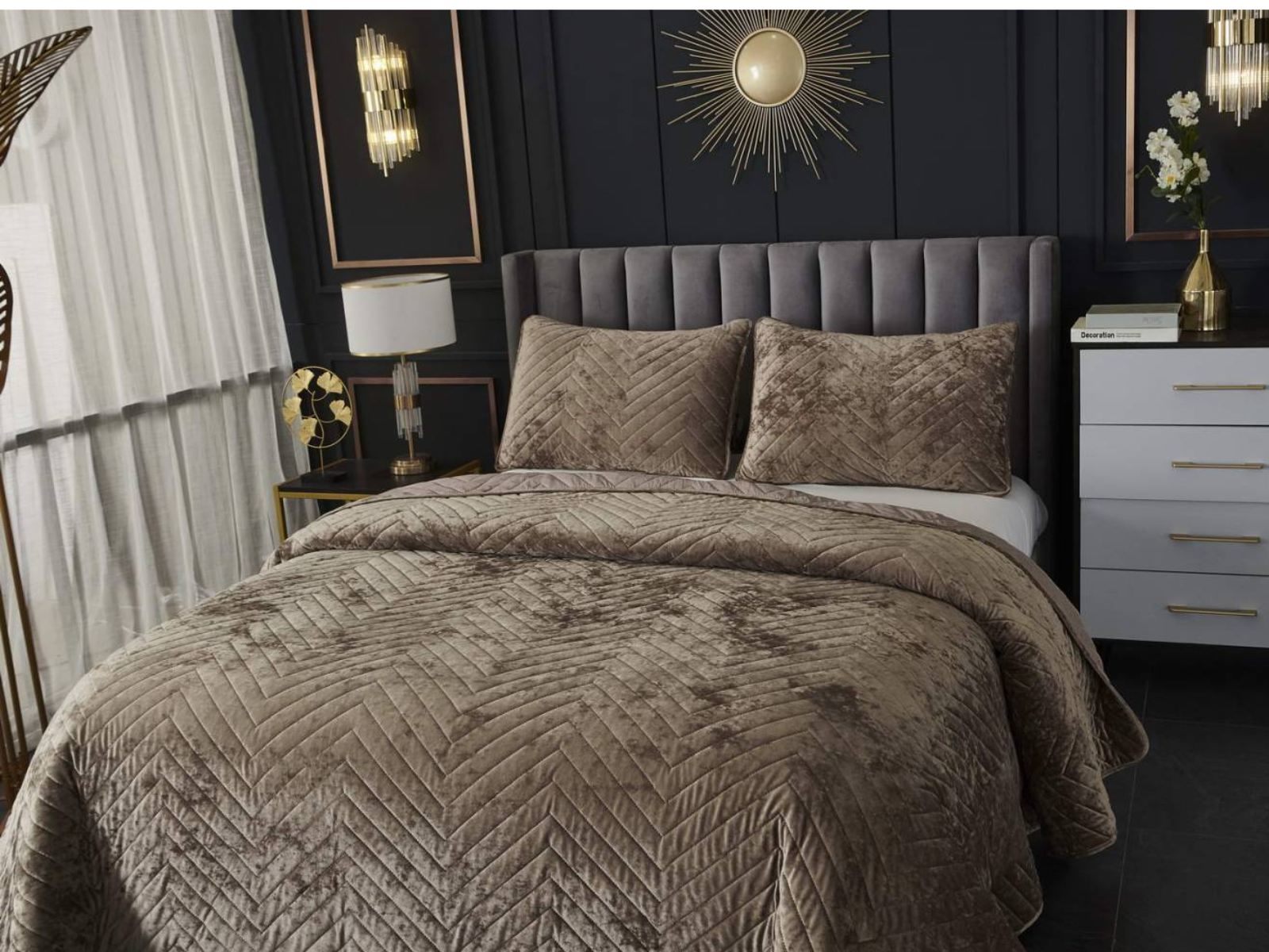 Покрывала Фернанд выглядят как будто сошли с картин, изображающих королевские покои. Бархатную ткань начали изготавливать еще в Средние века, её использовали в оформлении дворцов и изготавливали плащи и головные уборы для знати. Теперь и вы можете прикоснуться к этой роскоши! Бархатная текстура приятная на ощупь, а из-за особого плетения ткани, игра света на ней выглядит благородно. Поэтому покрывало Фернанд создаст необычайно уютную атмосферу в вашей спальне. Цветовая гамма разнообразна и включает восемь благородных оттенков: капучино, бежевый, изумруд, горчичный, терракотовый, пепельная роза, серый, стоун. За покрывалом Фернанд легко ухаживать: стирка при температуре 30 градусов, вручную или в машинке. Важно хорошо просушить изделие! При правильном уходе вещь прослужит долгие годы не потеряв форму и цвет.
