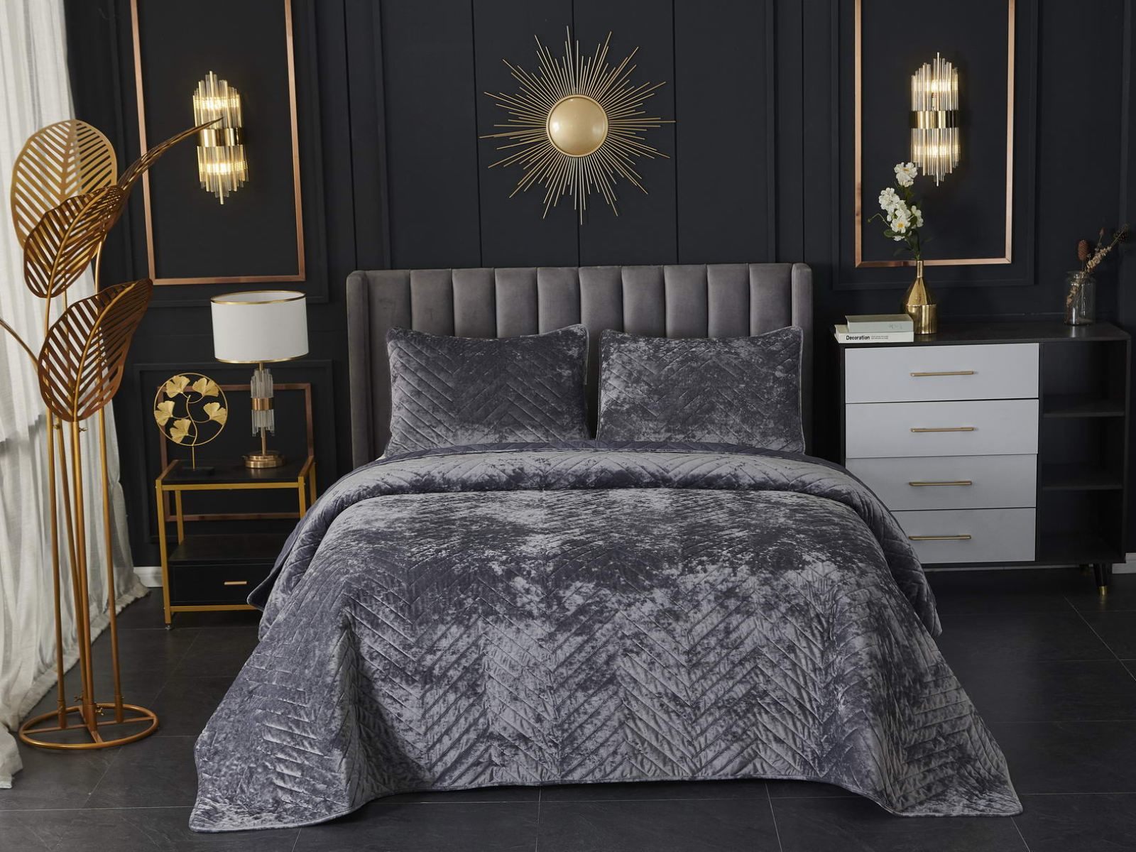Покрывала Фернанд выглядят как будто сошли с картин, изображающих королевские покои. Бархатную ткань начали изготавливать еще в Средние века, её использовали в оформлении дворцов и изготавливали плащи и головные уборы для знати. Теперь и вы можете прикоснуться к этой роскоши! Бархатная текстура приятная на ощупь, а из-за особого плетения ткани, игра света на ней выглядит благородно. Поэтому покрывало Фернанд создаст необычайно уютную атмосферу в вашей спальне. Цветовая гамма разнообразна и включает восемь благородных оттенков: капучино, бежевый, изумруд, горчичный, терракотовый, пепельная роза, серый, стоун. За покрывалом Фернанд легко ухаживать: стирка при температуре 30 градусов, вручную или в машинке. Важно хорошо просушить изделие! При правильном уходе вещь прослужит долгие годы не потеряв форму и цвет.