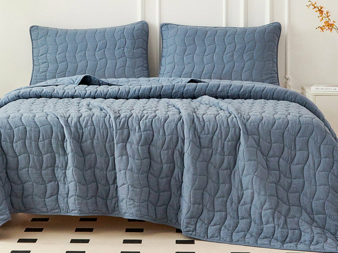 Покрывала и наволочки выполнены с кантом. Стежка двойной нитью под цвет покрывала.