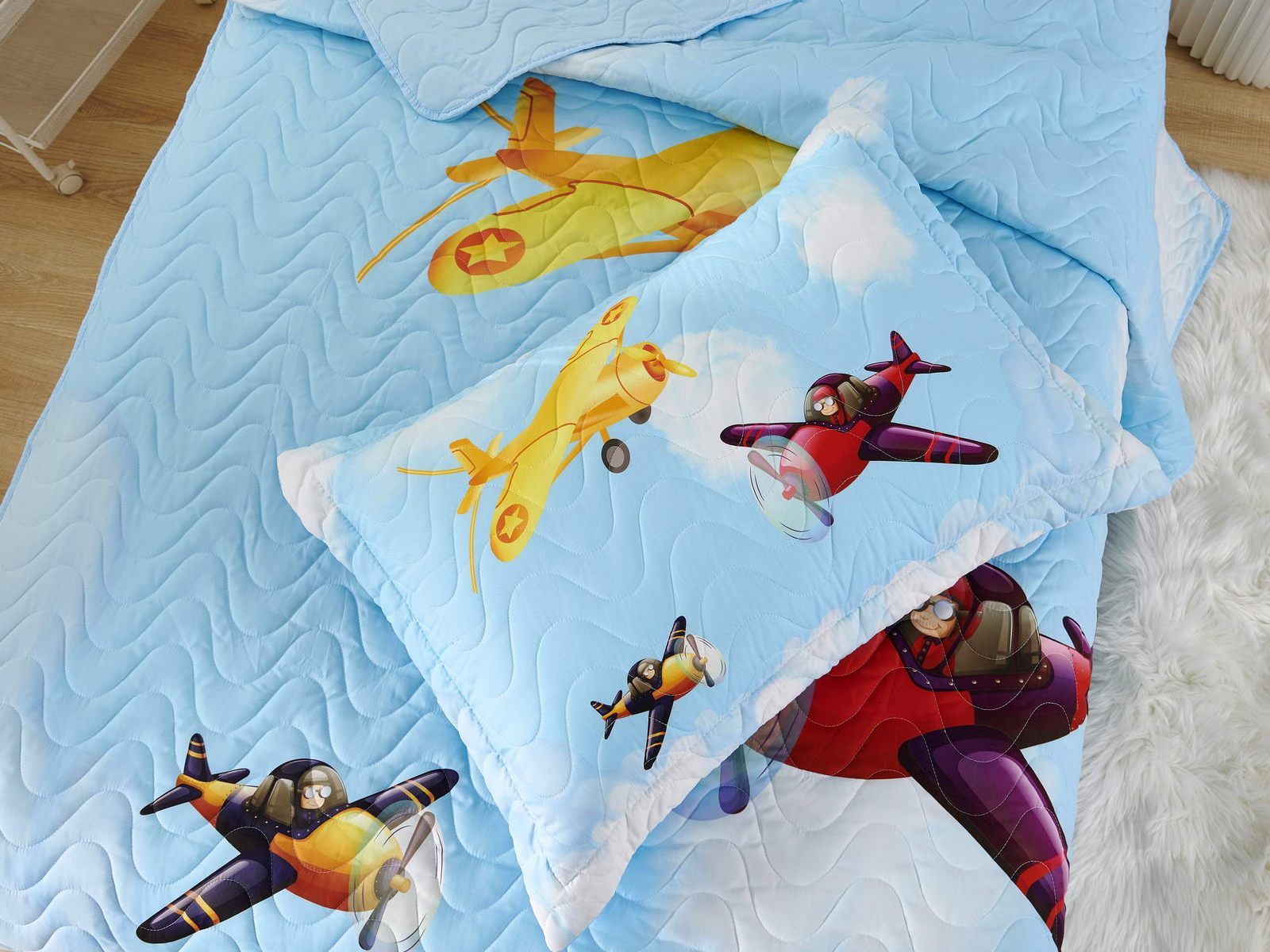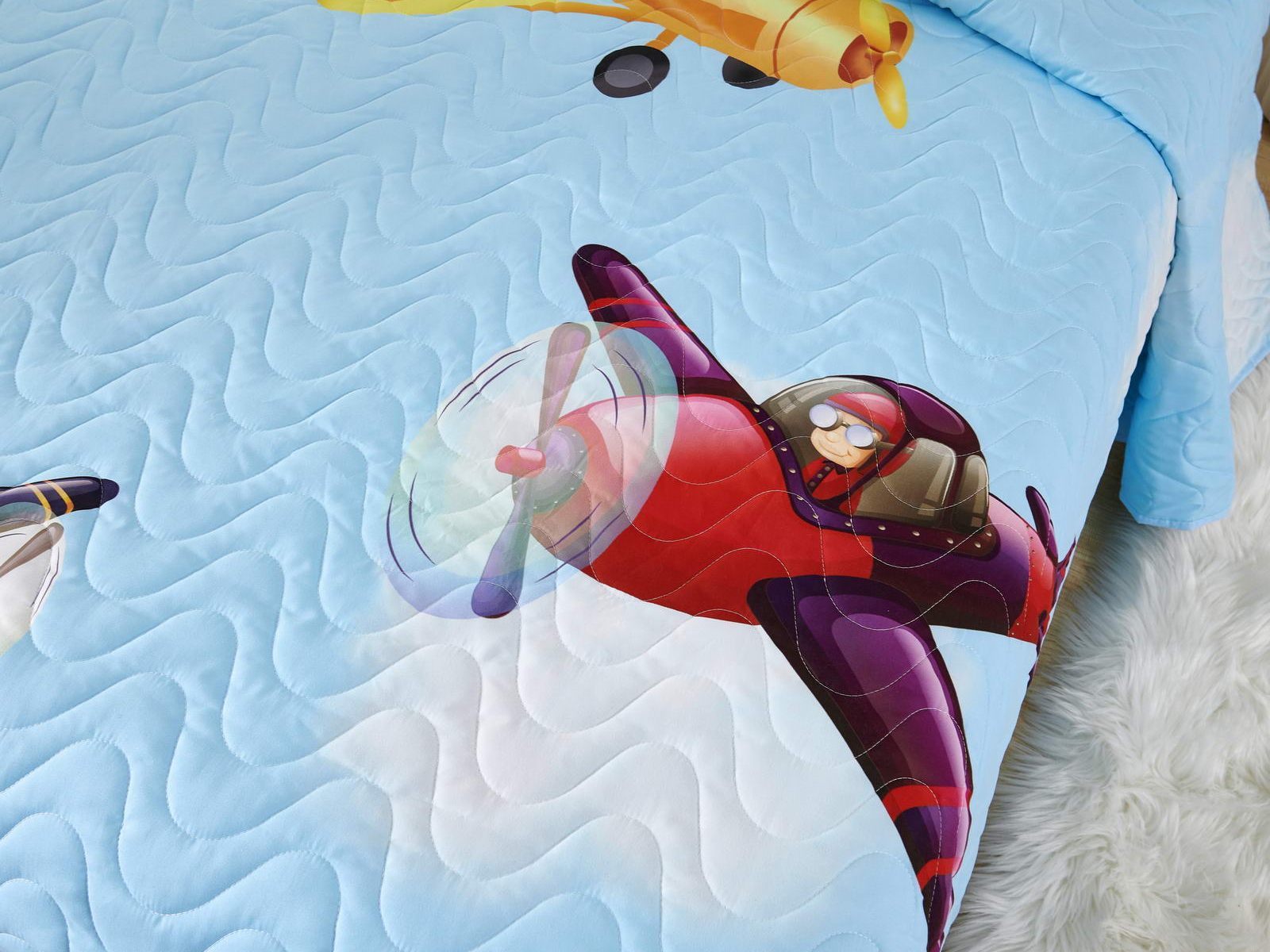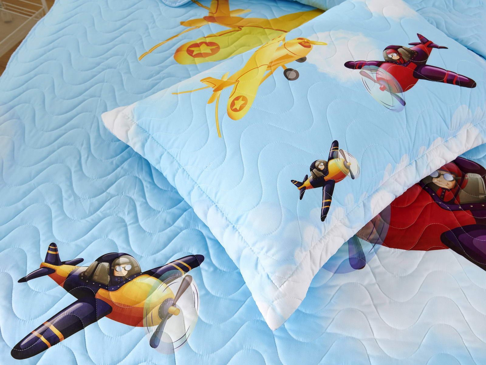 Детские покрывала - это особая забота об уюте и комфорте ребенка. Красивое, стеганое покрывало коллекции «Sunny day» придаст любой детской спальне яркую индивидуальность. Волнистые стежки делают изящные покрывала еще более выразительными и изящными. К ним в комплекте идут наволочки, у них есть интересная особенность, которая непременно понравится ребенку– небольшие ушки.