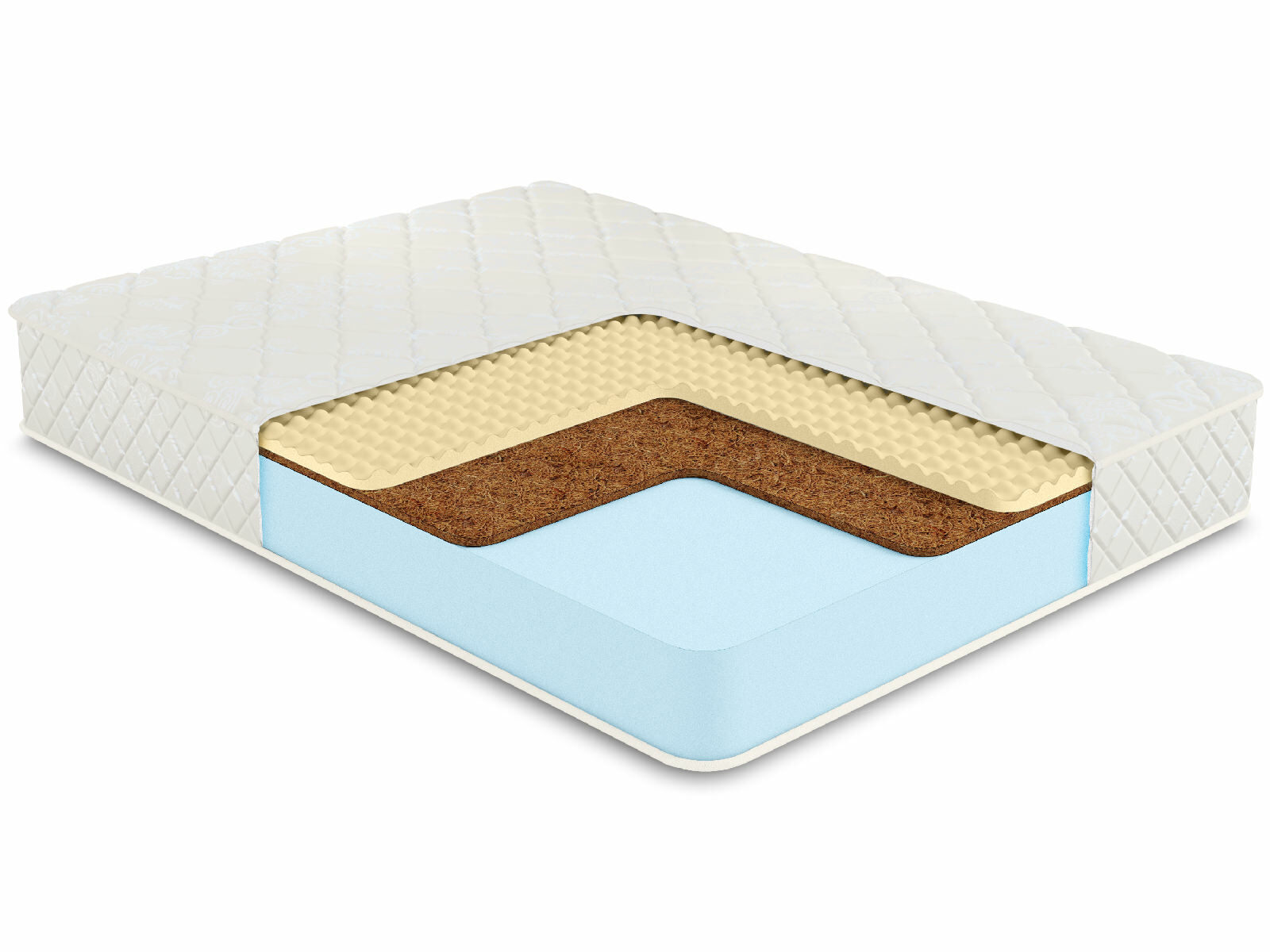 Чехол матраса из хлопкового жаккарда, который обладает высокой износостойкостью, простеган на Холлконе и имеет очень длительный срок службы. Ткань чехла может немного отличаться по рисунку, а также по оттенку цвета, это не влияет на ее свойства и качество.