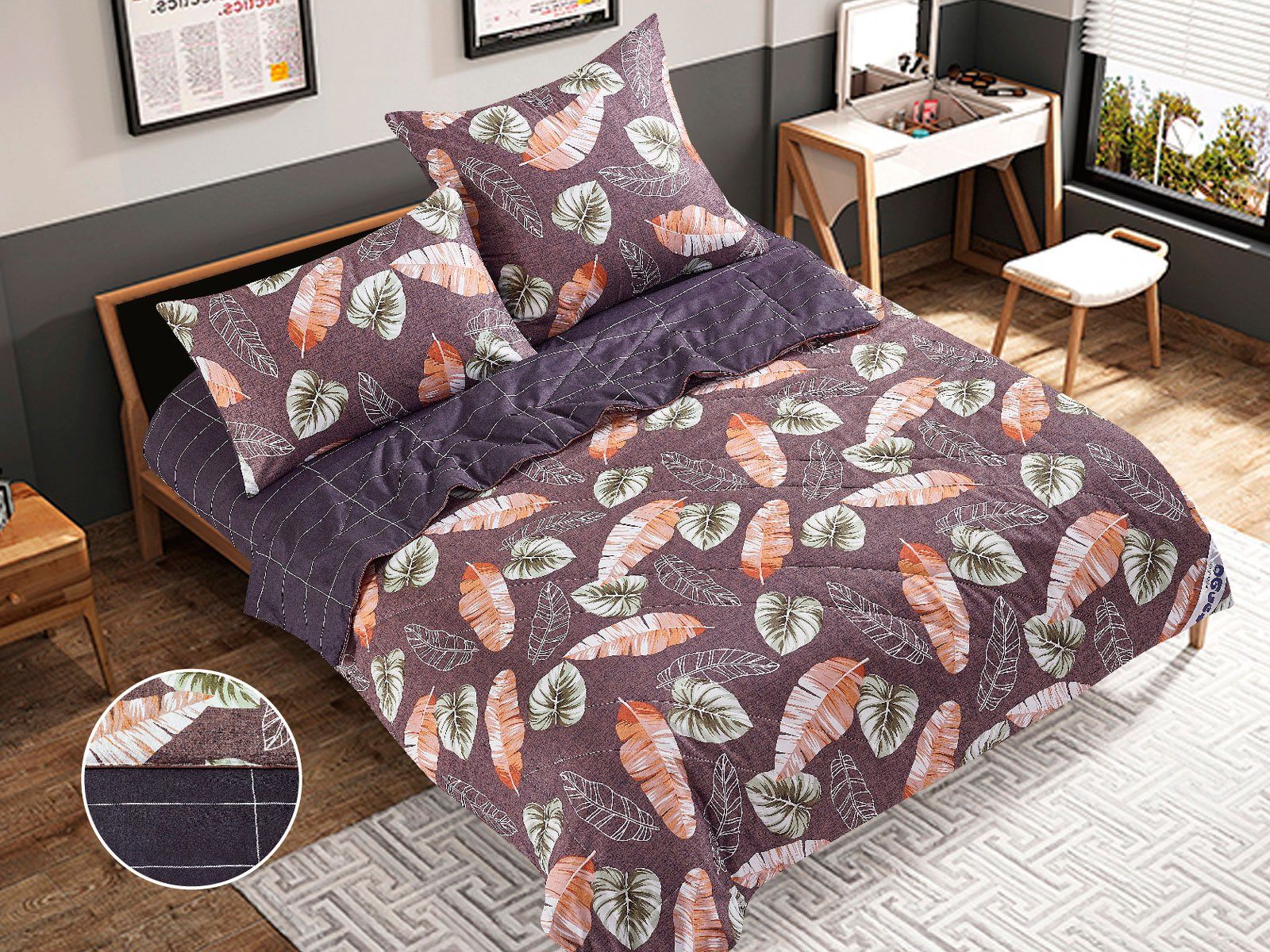 В данный комплект вместо пододеяльника входит облегченное одеяло. Комплект подойдет тем, кто устал от мучительного натягивания пододеяльников на одеяло.